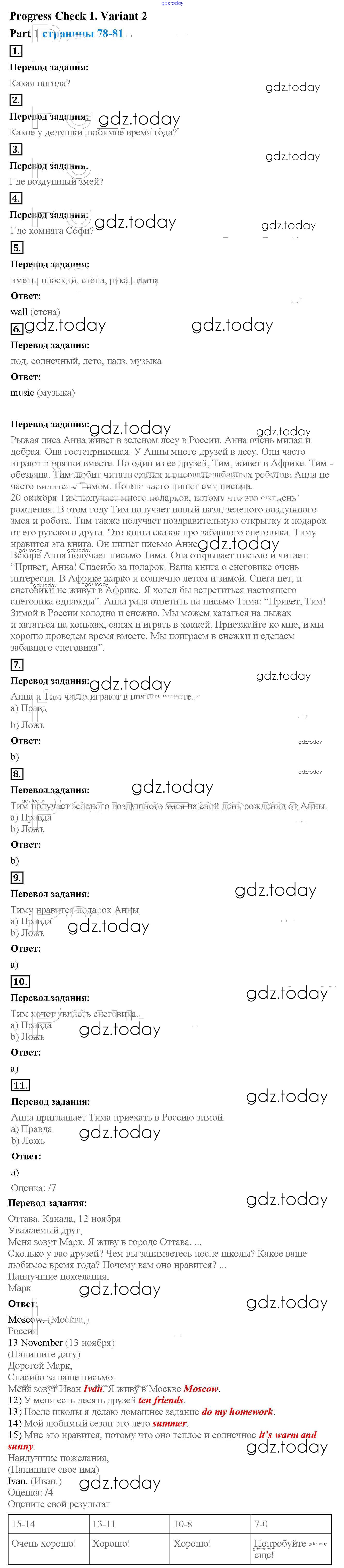 Ответы к Variant 2 Progress check 1 1 Рабочей тетради с контрольными работами по Английскому языку для 4 класса Биболетова, Денисенко Аст/Астрель Enjoy English 2016