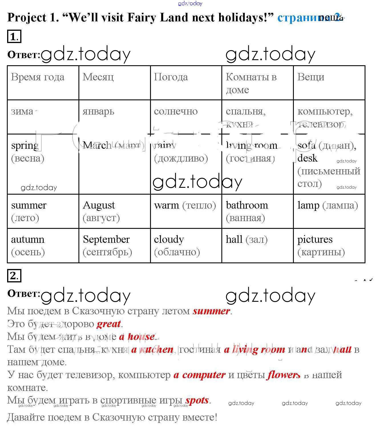 На страницах сайта gdz.today вы найдете учебный и вспомогательный материал, направленный на улучшения знаний школьной программы. ГДЗ - онлайн мир знаний Project 1 Решения к Unit 2 1 Рабочей тетради с контрольными работами по Английскому языку для 4 класса Биболетова, Денисенко Аст/Астрель Enjoy English 2016