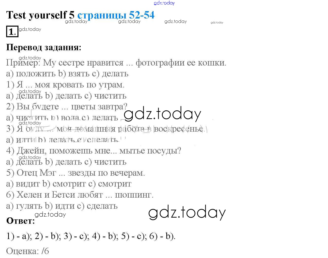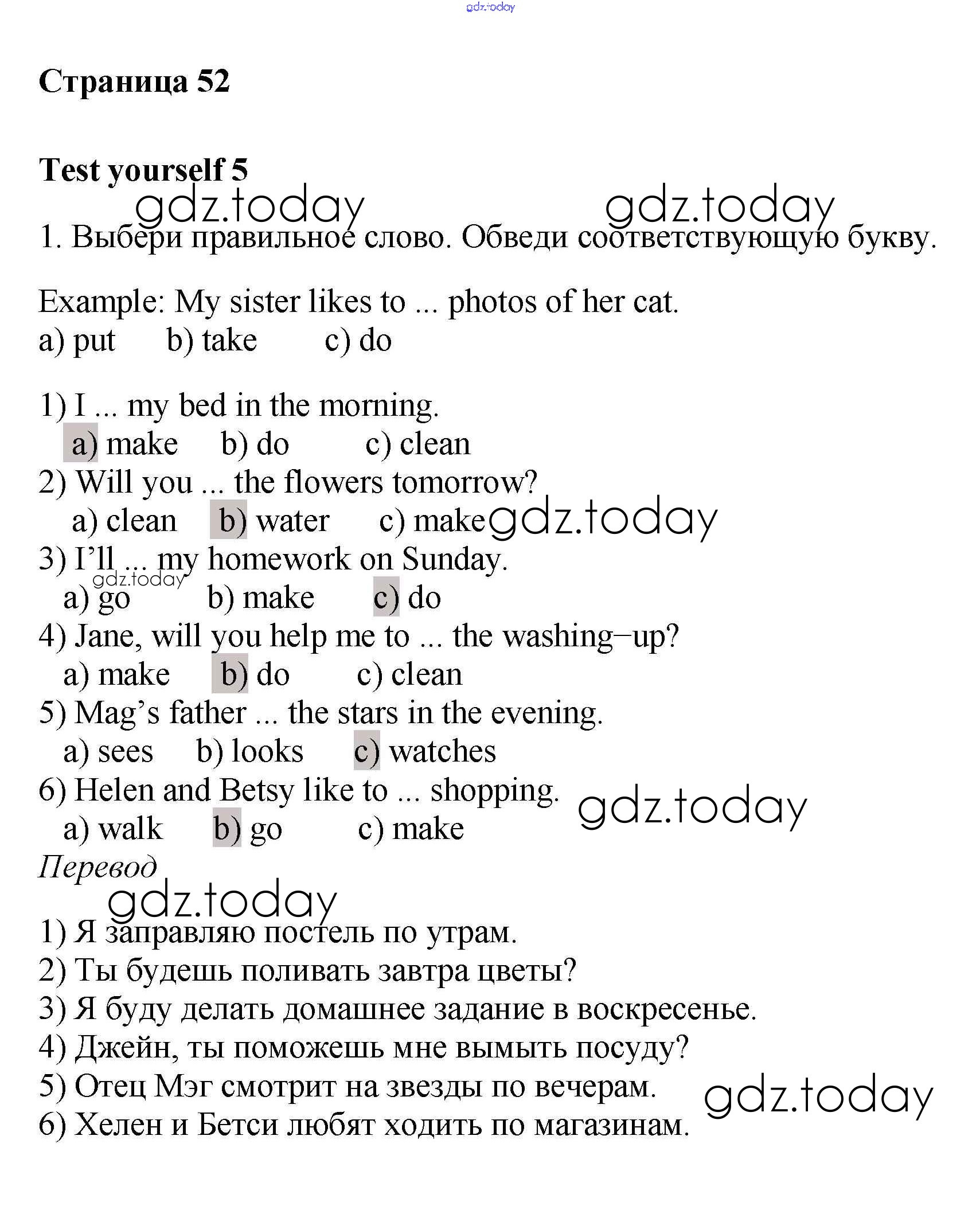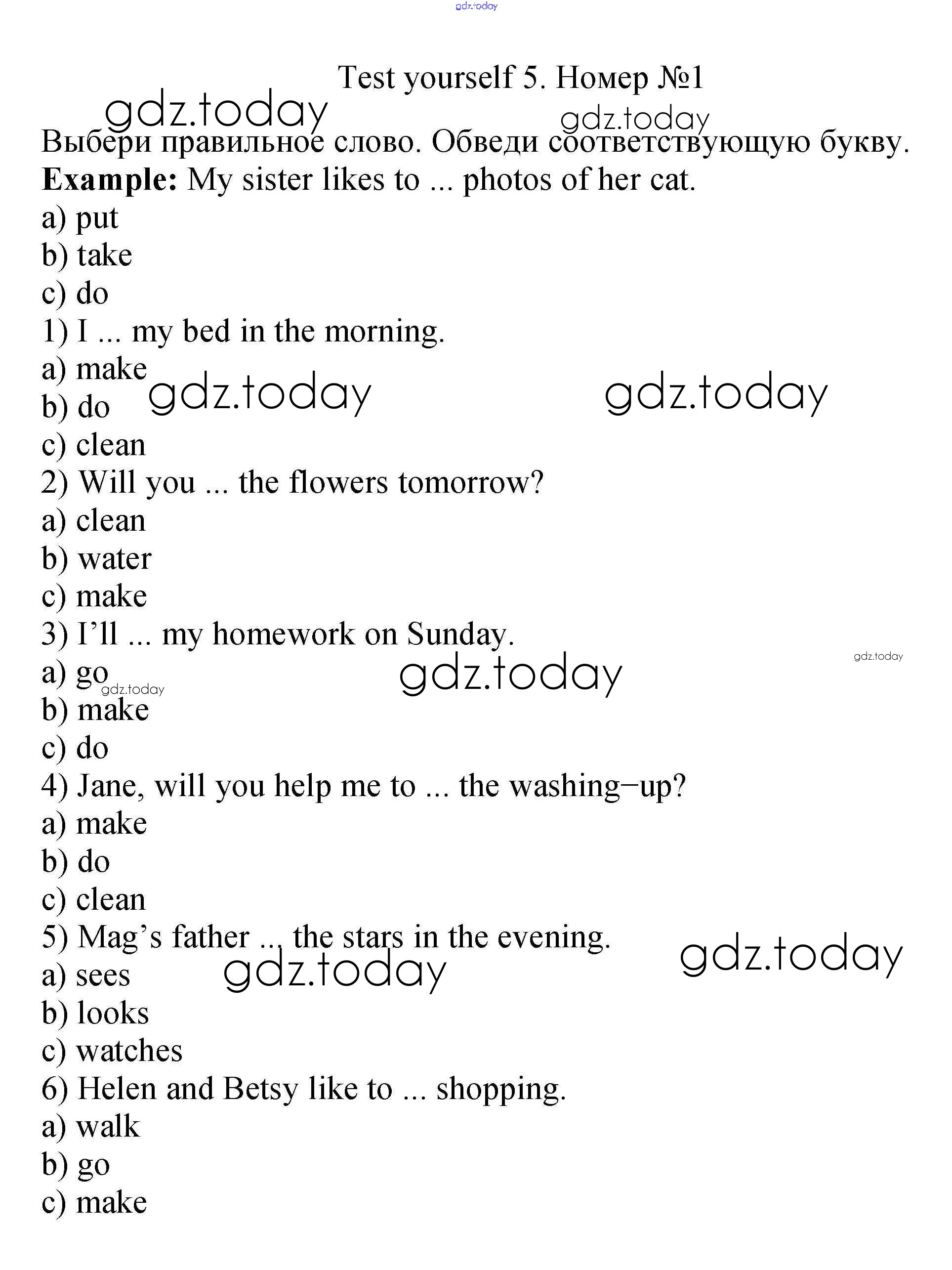 На страницах сайта gdz.today вы найдете учебный и вспомогательный материал, направленный на улучшения знаний школьной программы. ГДЗ - онлайн мир знаний Test yourself 5 Решения к Unit 5 1 Рабочей тетради с контрольными работами по Английскому языку для 4 класса Биболетова, Денисенко Аст/Астрель Enjoy English 2016