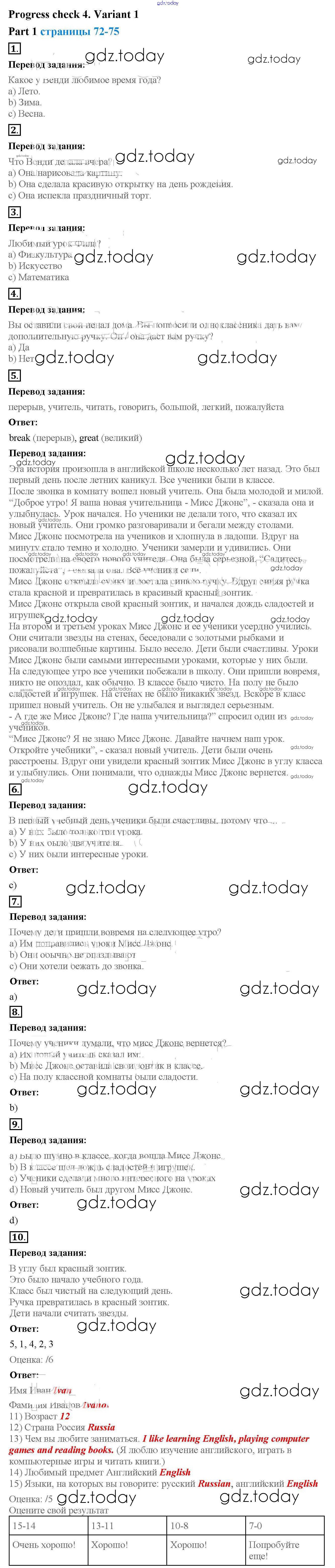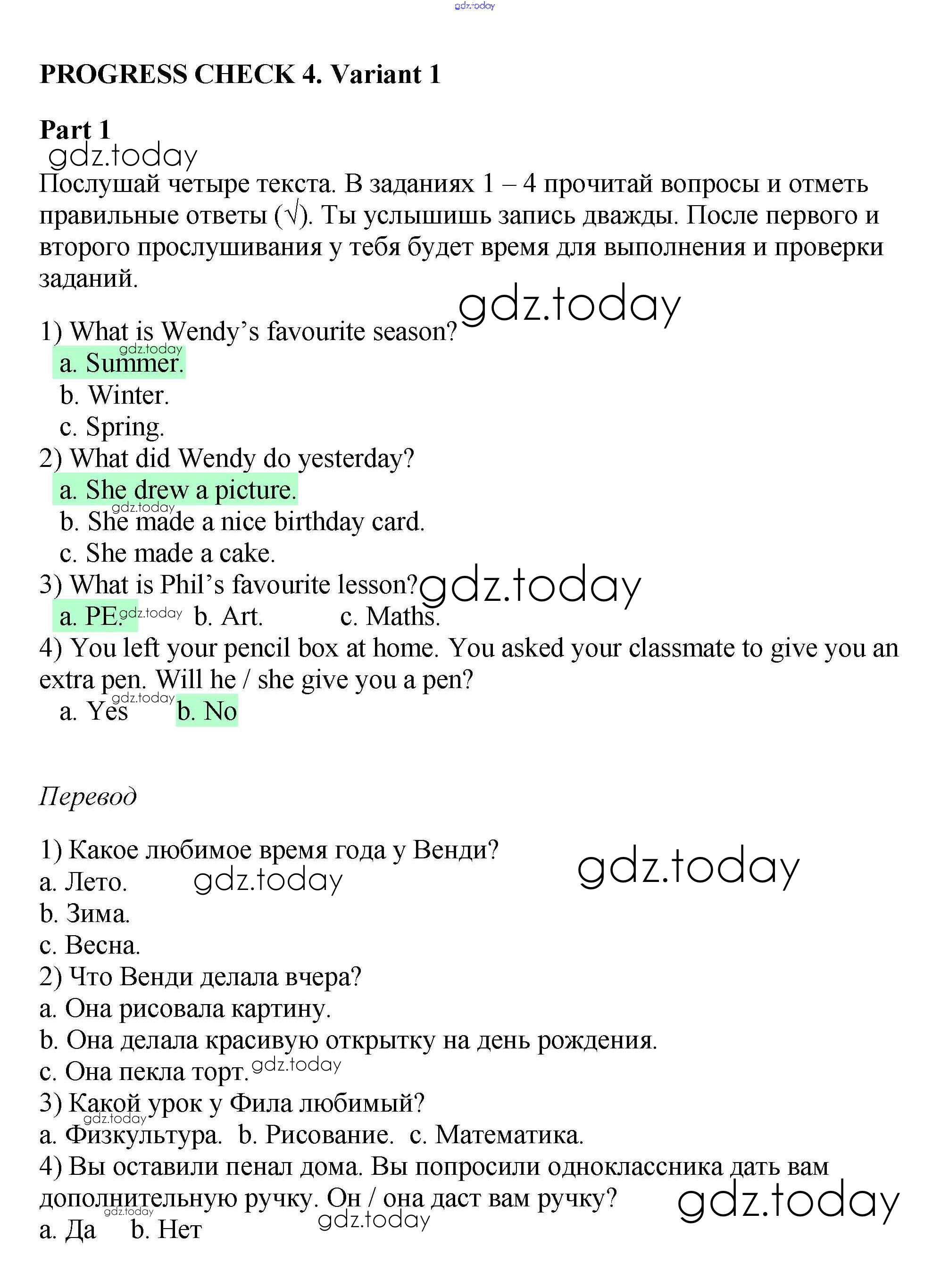 Ответы к Variant 1 Progress check 4 1 Рабочей тетради с контрольными работами по Английскому языку для 4 класса Биболетова, Денисенко Аст/Астрель Enjoy English 2016