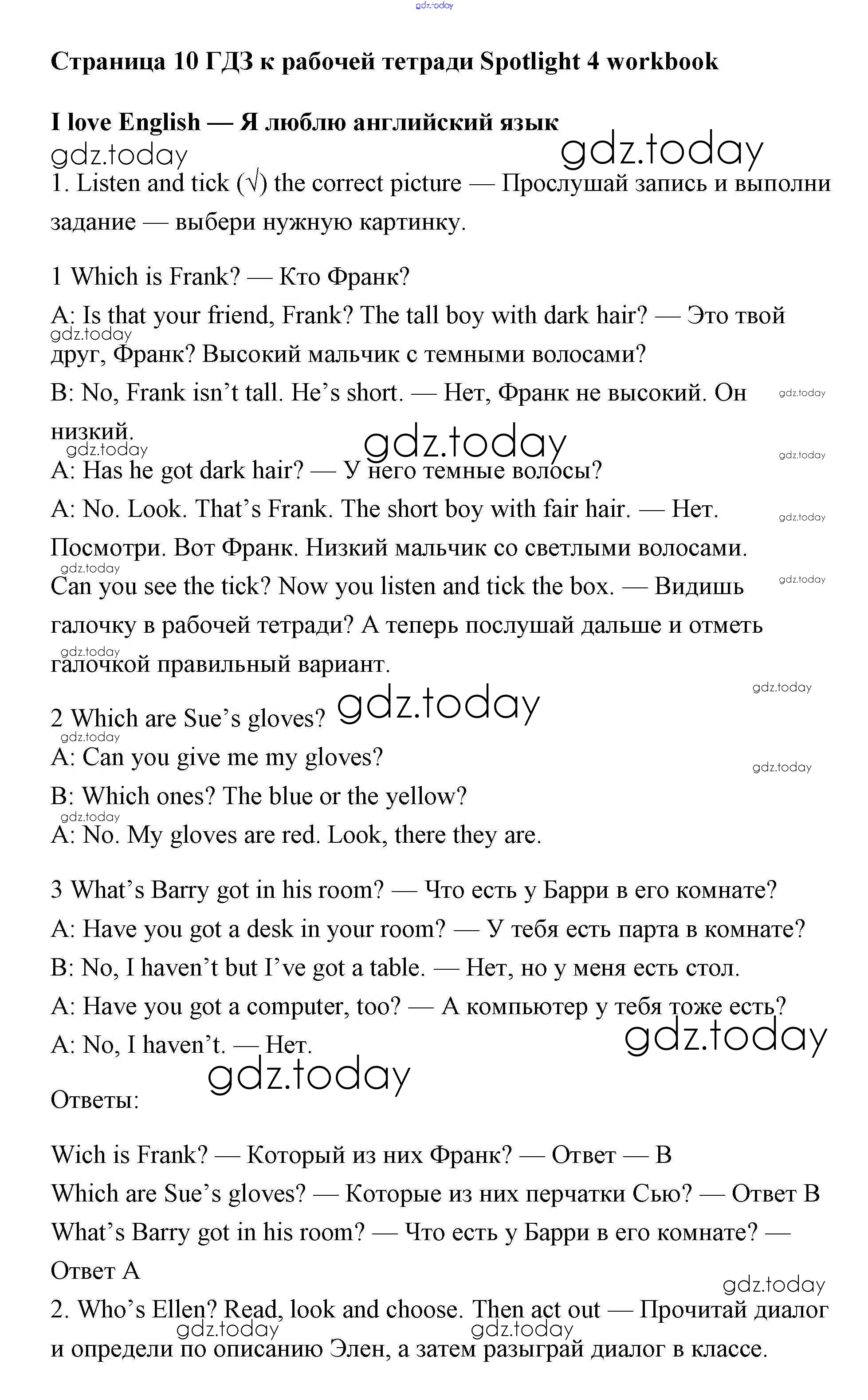 На страницах сайта gdz.today вы найдете учебный и вспомогательный материал, направленный на улучшения знаний школьной программы. ГДЗ - онлайн мир знаний I love English Решение к Module 1 страница 10 Рабочей тетради по Английскому языку для 4 класса Быкова, Эванс Просвещение Spotlight 2017