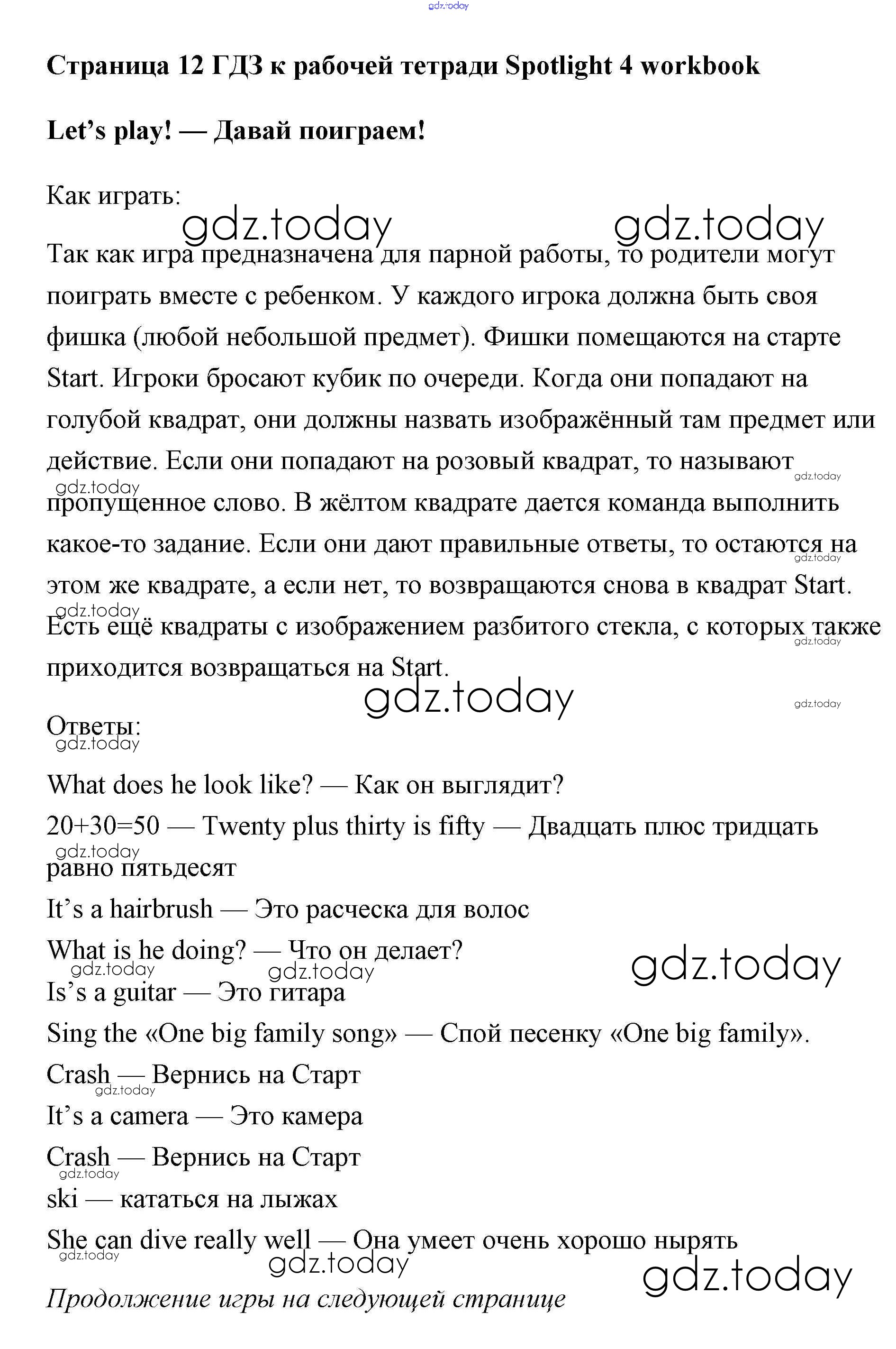Ответы к Let`s play Решение к Module 1 страница 12 Рабочей тетради по Английскому языку для 4 класса Быкова, Эванс Просвещение Spotlight 2017