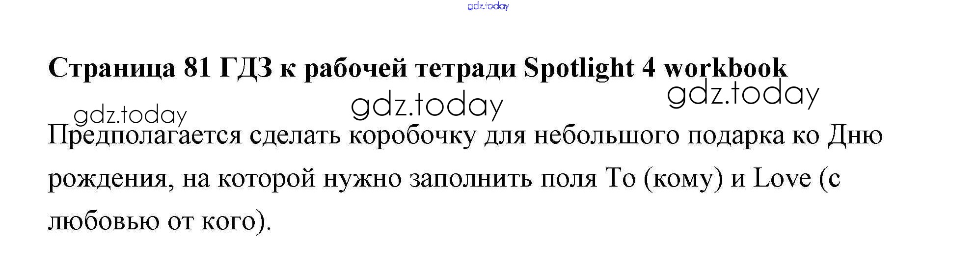 На страницах сайта gdz.today вы найдете учебный и вспомогательный материал, направленный на улучшения знаний школьной программы. ГДЗ - онлайн мир знаний Решение к Craftwork Sheets страница Рабочей тетради по Английскому языку для 4 класса Быкова, Эванс Просвещение Spotlight 2017