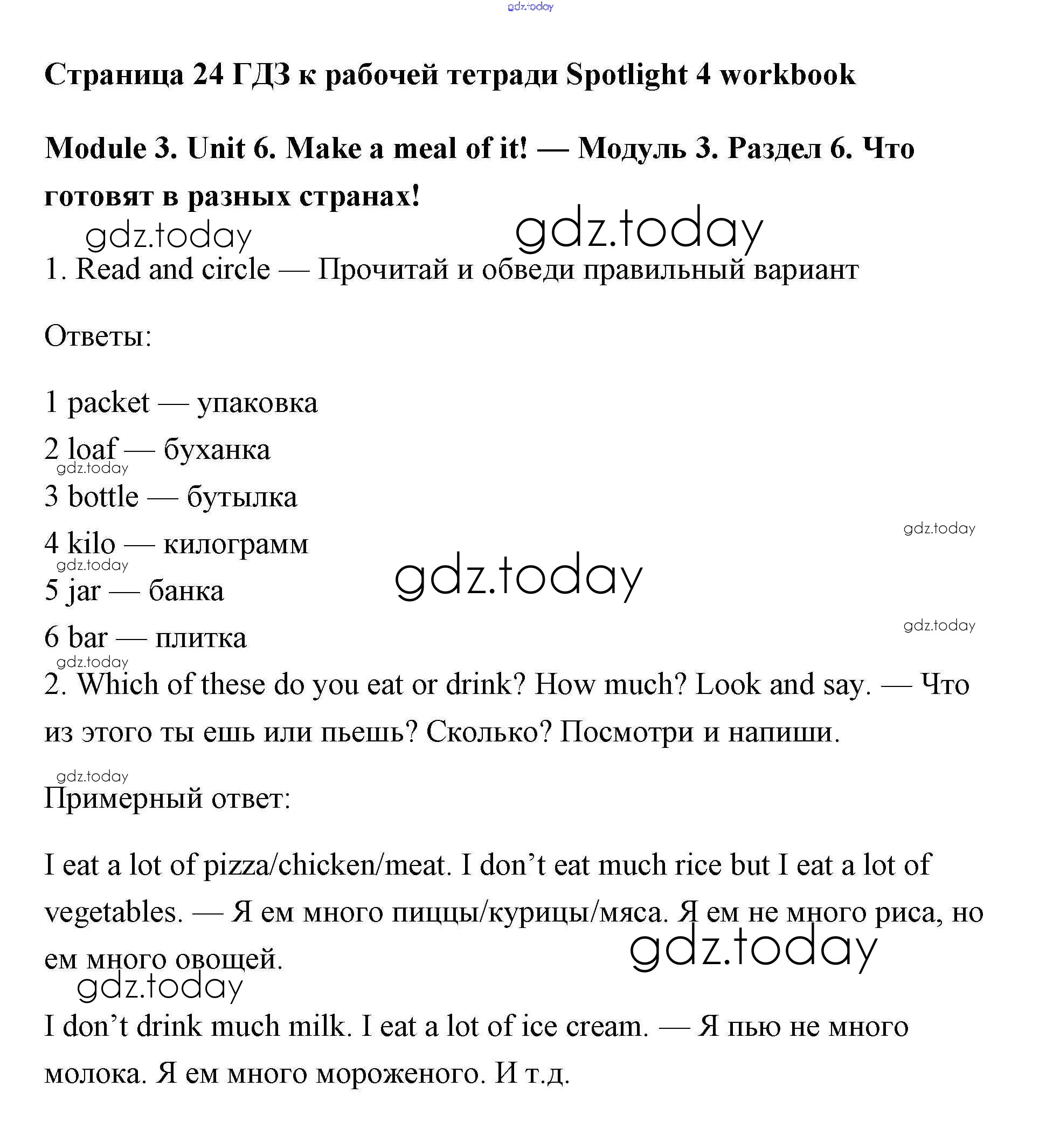 Ответы к Unit 6 Решение к Module 3 страница 24 Рабочей тетради по Английскому языку для 4 класса Быкова, Эванс Просвещение Spotlight 2017
