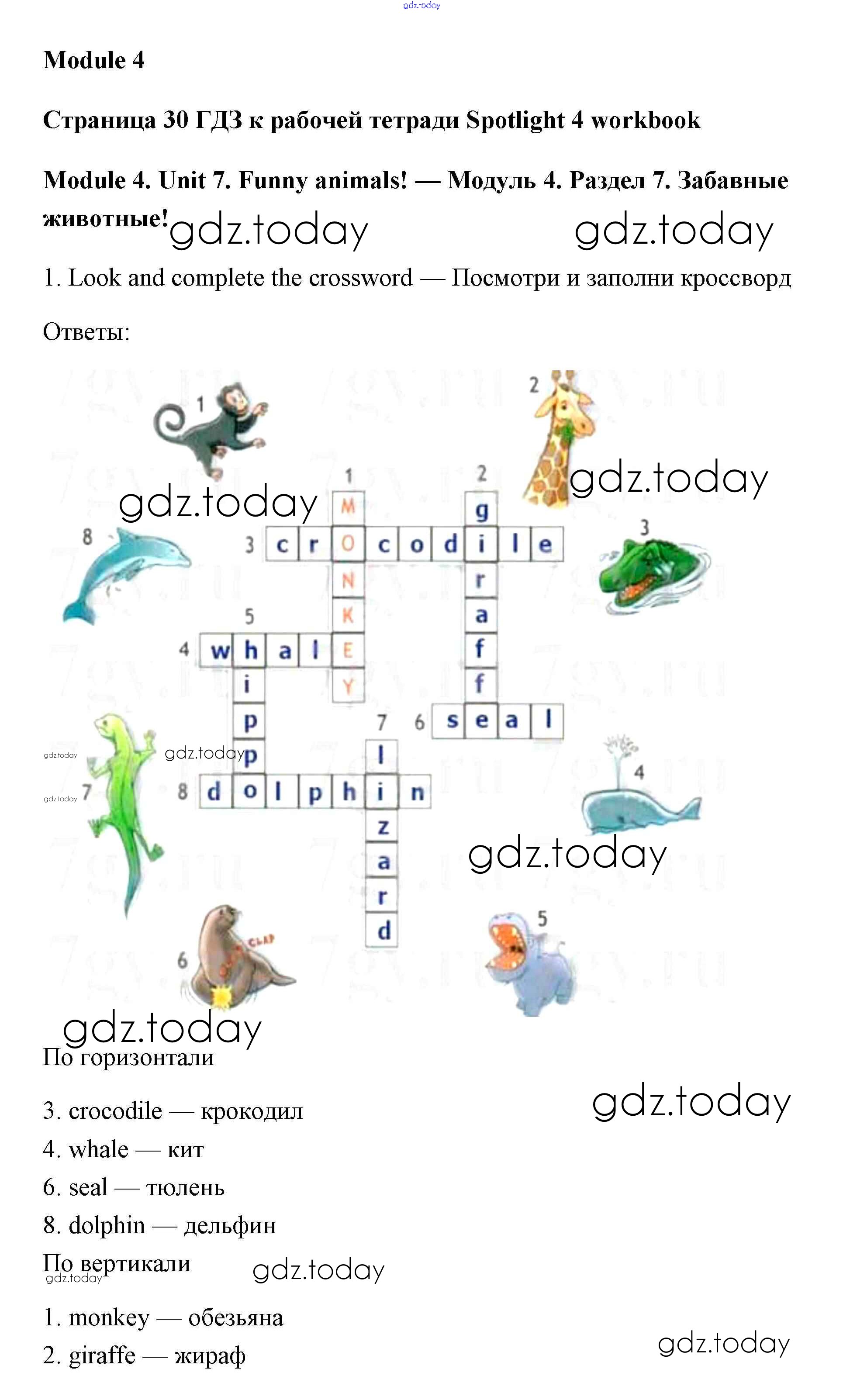 На страницах сайта gdz.today вы найдете учебный и вспомогательный материал, направленный на улучшения знаний школьной программы. ГДЗ - онлайн мир знаний Unit 7 Решение к Module 4 страница 30 Рабочей тетради по Английскому языку для 4 класса Быкова, Эванс Просвещение Spotlight 2017
