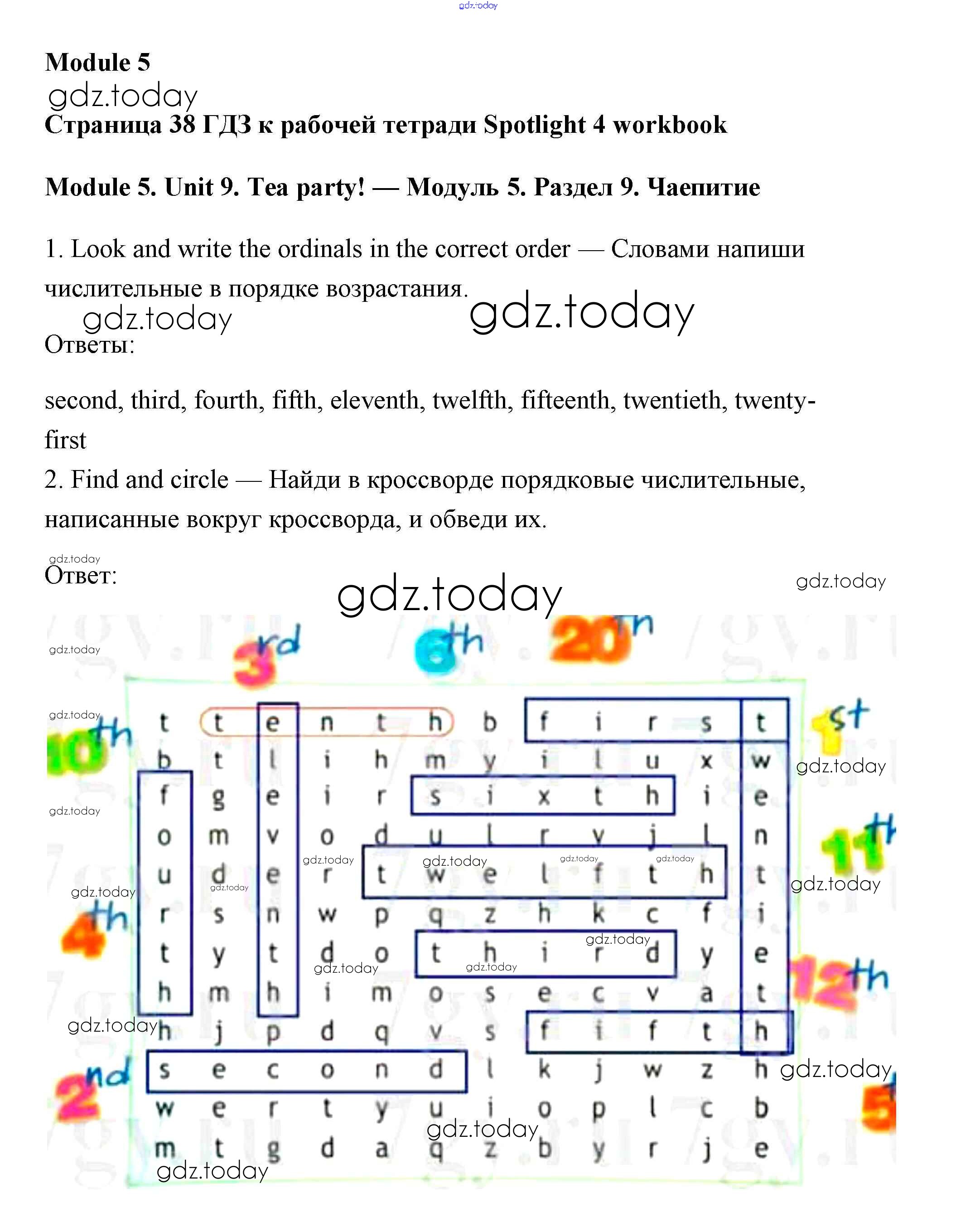 Ответы к Unit 9 Решение к Module 5 страница 38 Рабочей тетради по Английскому языку для 4 класса Быкова, Эванс Просвещение Spotlight 2017