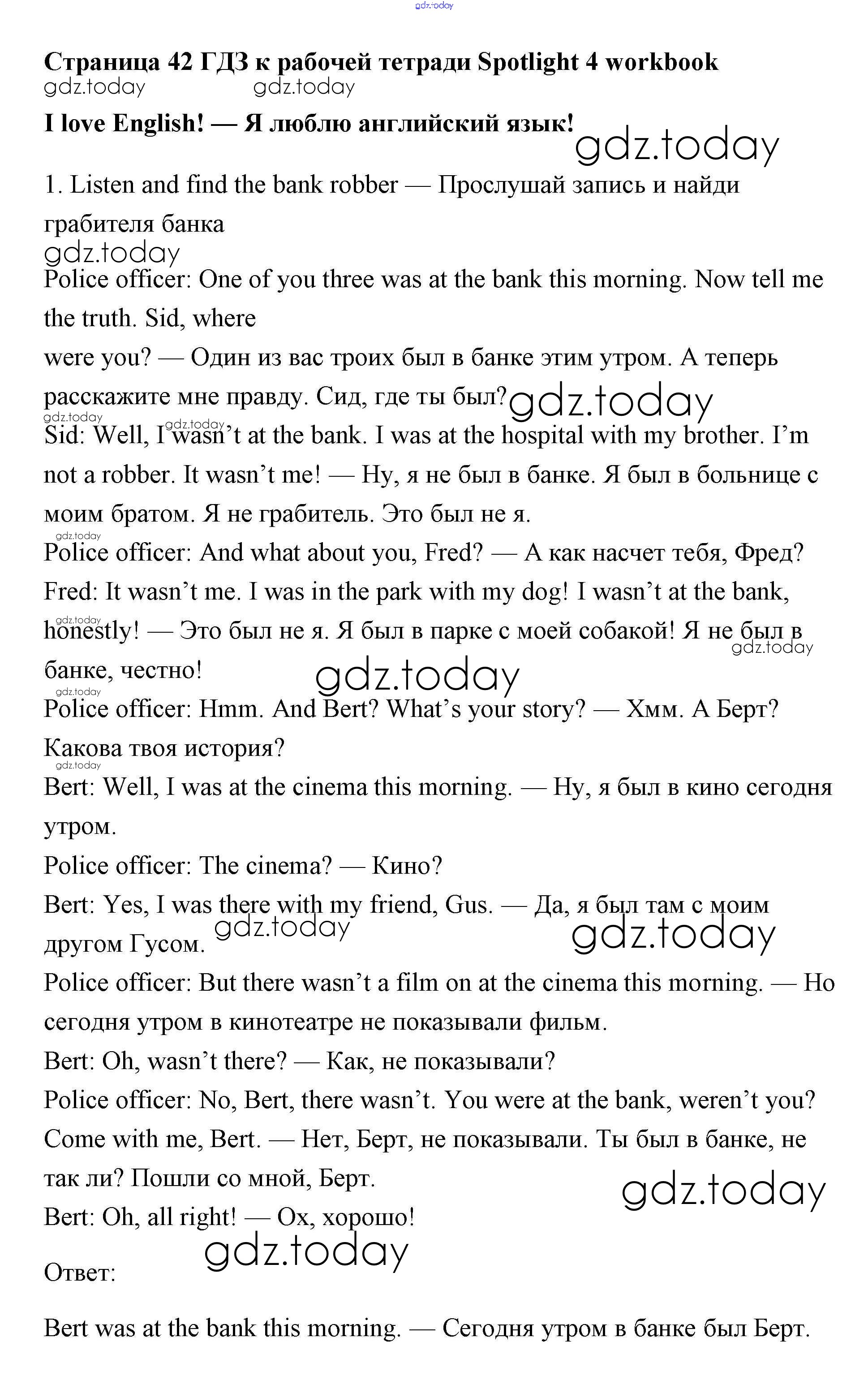 На страницах сайта gdz.today вы найдете учебный и вспомогательный материал, направленный на улучшения знаний школьной программы. ГДЗ - онлайн мир знаний I love English Решение к Module 5 страница 42 Рабочей тетради по Английскому языку для 4 класса Быкова, Эванс Просвещение Spotlight 2017
