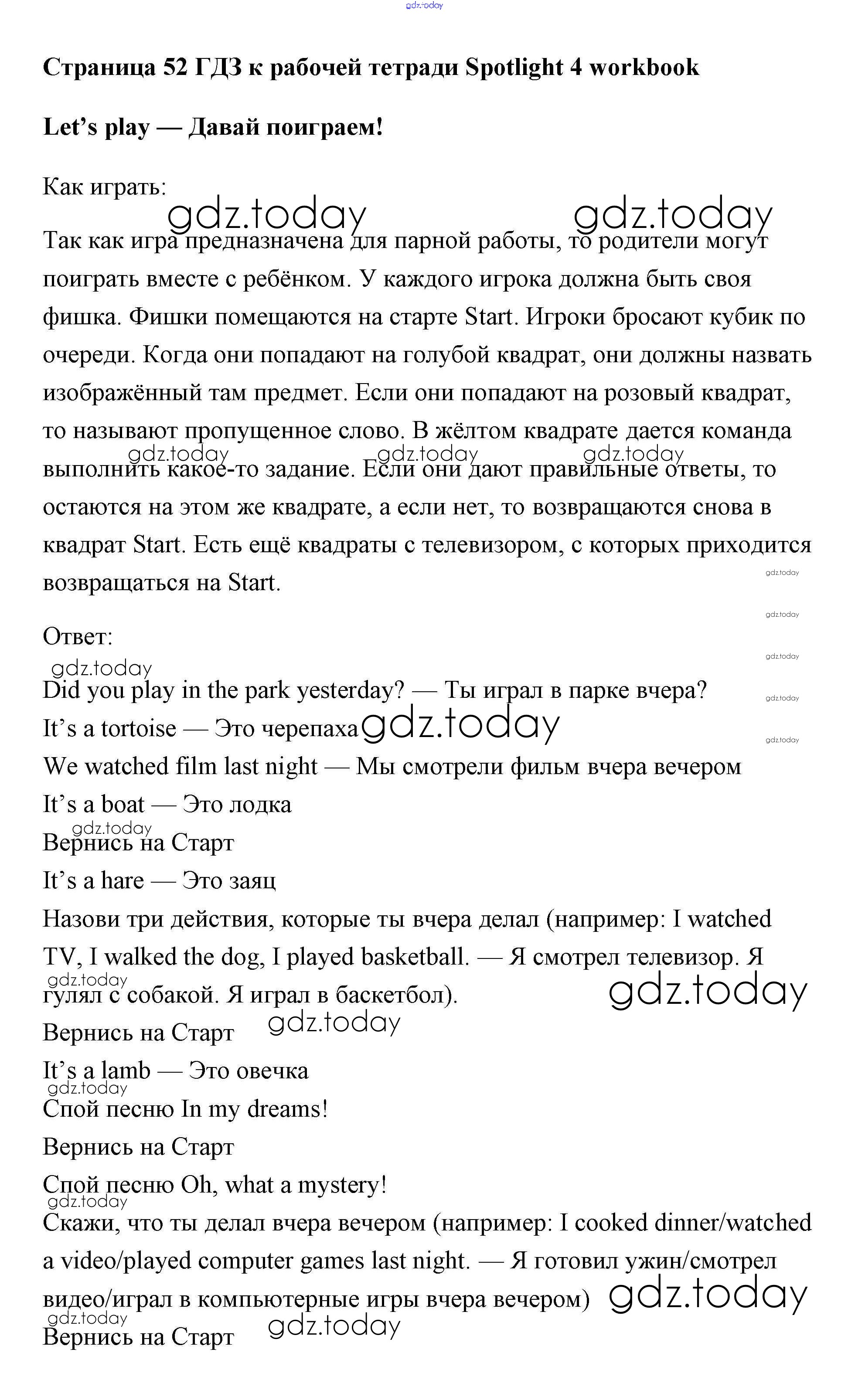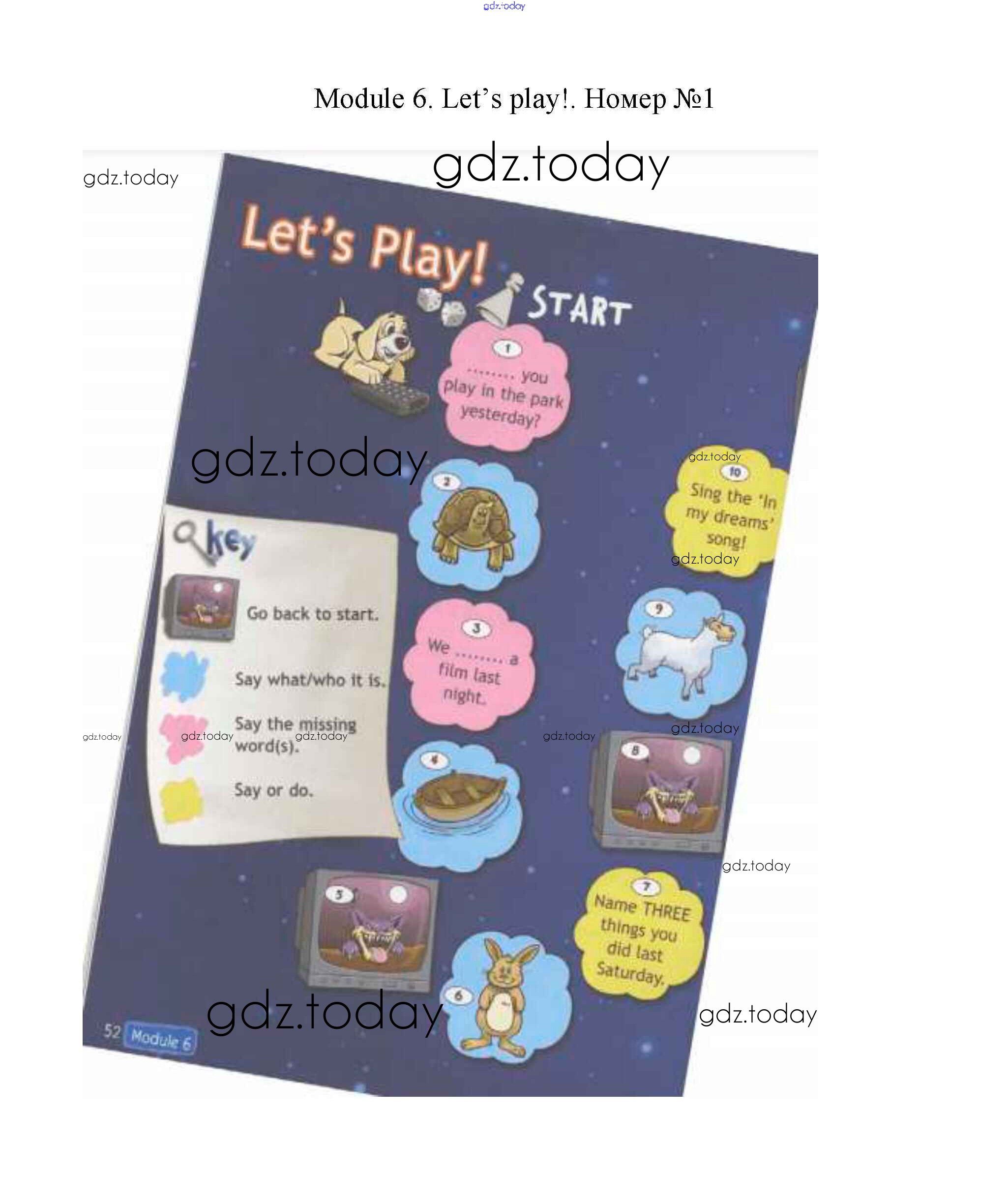 На страницах сайта gdz.today вы найдете учебный и вспомогательный материал, направленный на улучшения знаний школьной программы. ГДЗ - онлайн мир знаний Let`s play Решение к Module 6 страница 52 Рабочей тетради по Английскому языку для 4 класса Быкова, Эванс Просвещение Spotlight 2017