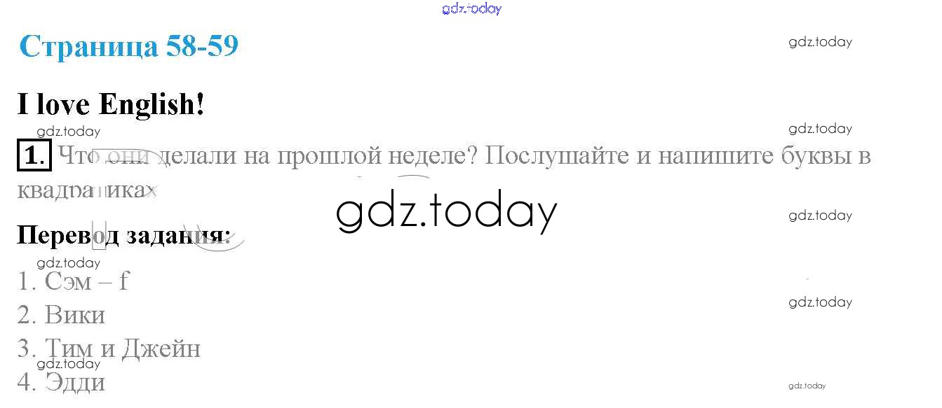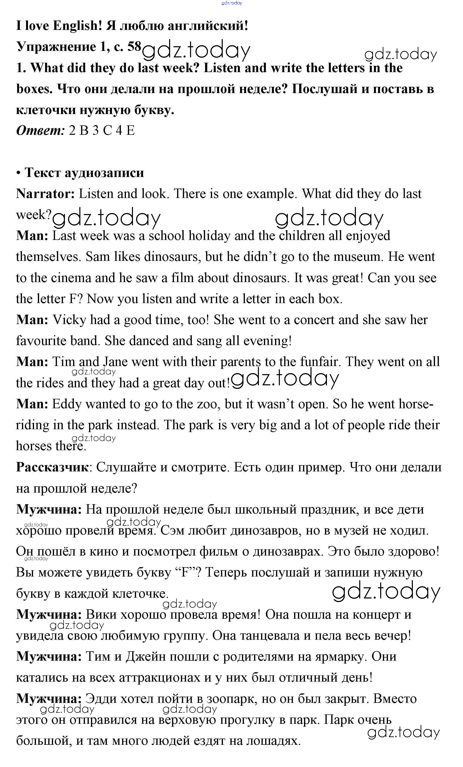 На страницах сайта gdz.today вы найдете учебный и вспомогательный материал, направленный на улучшения знаний школьной программы. ГДЗ - онлайн мир знаний I love English Решение к Module 7 страница 58 Рабочей тетради по Английскому языку для 4 класса Быкова, Эванс Просвещение Spotlight 2017