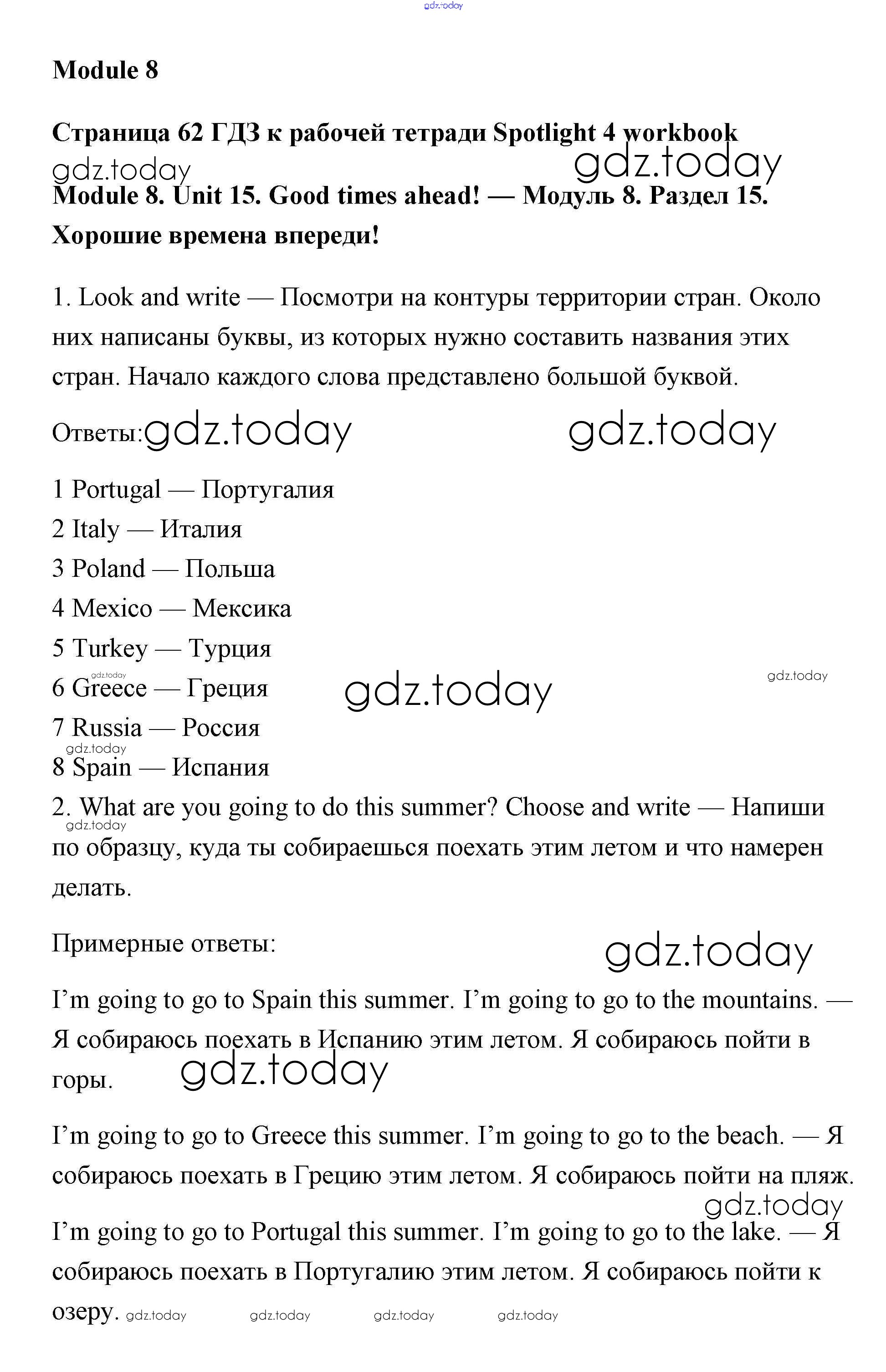 Ответы к Unit 15 Решение к Module 8 страница 62 Рабочей тетради по Английскому языку для 4 класса Быкова, Эванс Просвещение Spotlight 2017