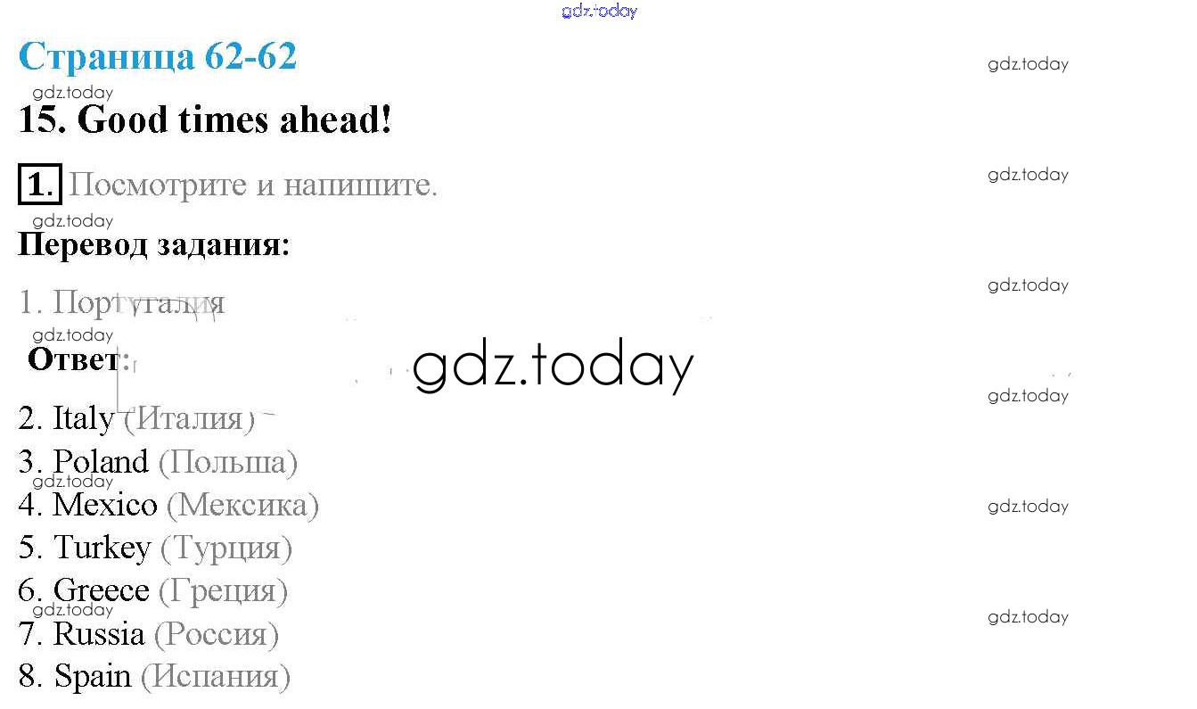 На страницах сайта gdz.today вы найдете учебный и вспомогательный материал, направленный на улучшения знаний школьной программы. ГДЗ - онлайн мир знаний Unit 15 Решение к Module 8 страница 62 Рабочей тетради по Английскому языку для 4 класса Быкова, Эванс Просвещение Spotlight 2017