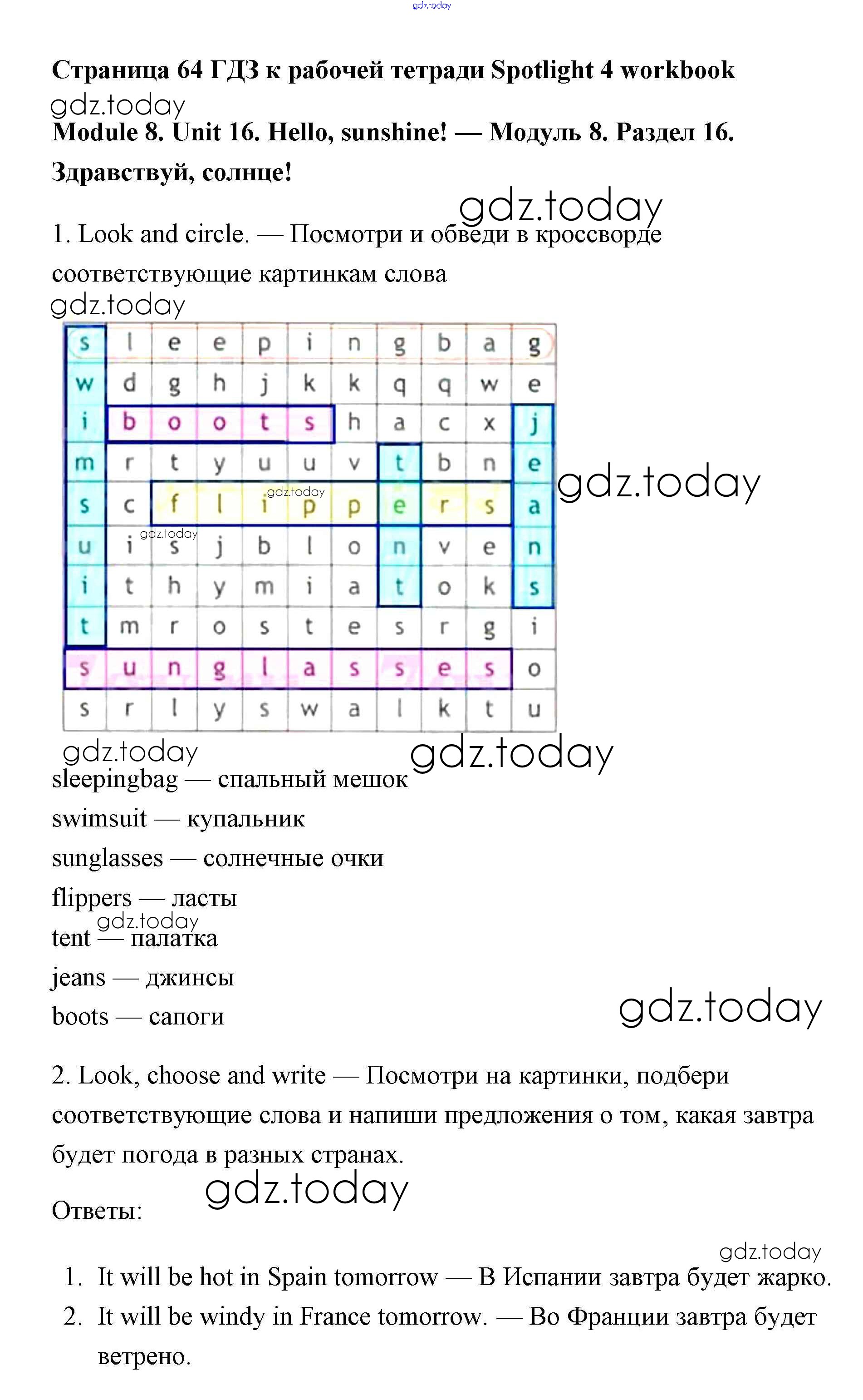 Ответы к Unit 16 Решение к Module 8 страница 64 Рабочей тетради по Английскому языку для 4 класса Быкова, Эванс Просвещение Spotlight 2017