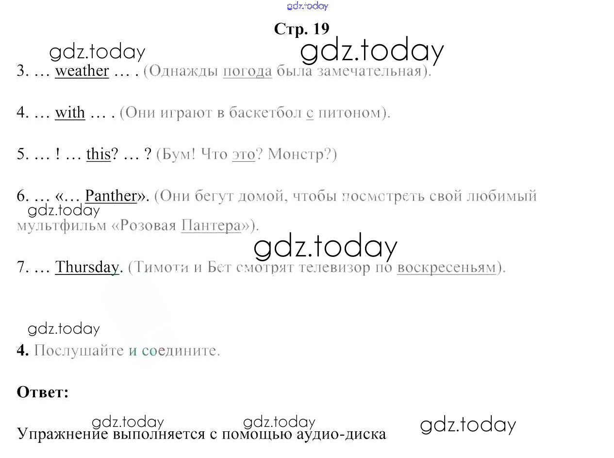 На страницах сайта gdz.today вы найдете учебный и вспомогательный материал, направленный на улучшения знаний школьной программы. ГДЗ - онлайн мир знаний Решение к части 1. Страницы 19 Рабочей тетради по Английскому языку для 4 класса Лапицкая, Калишевич Аверсэв 2019
