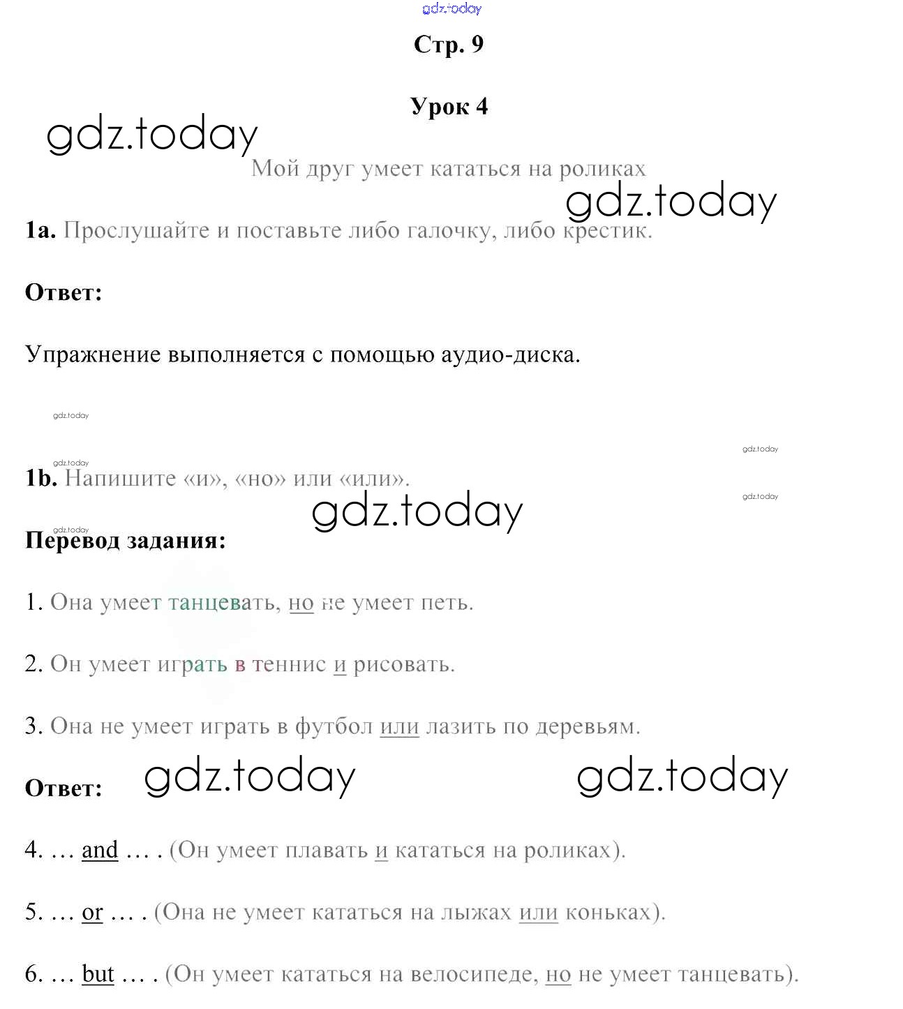 На страницах сайта gdz.today вы найдете учебный и вспомогательный материал, направленный на улучшения знаний школьной программы. ГДЗ - онлайн мир знаний Решение к части 1. Страницы 9 Рабочей тетради по Английскому языку для 4 класса Лапицкая, Калишевич Аверсэв 2019