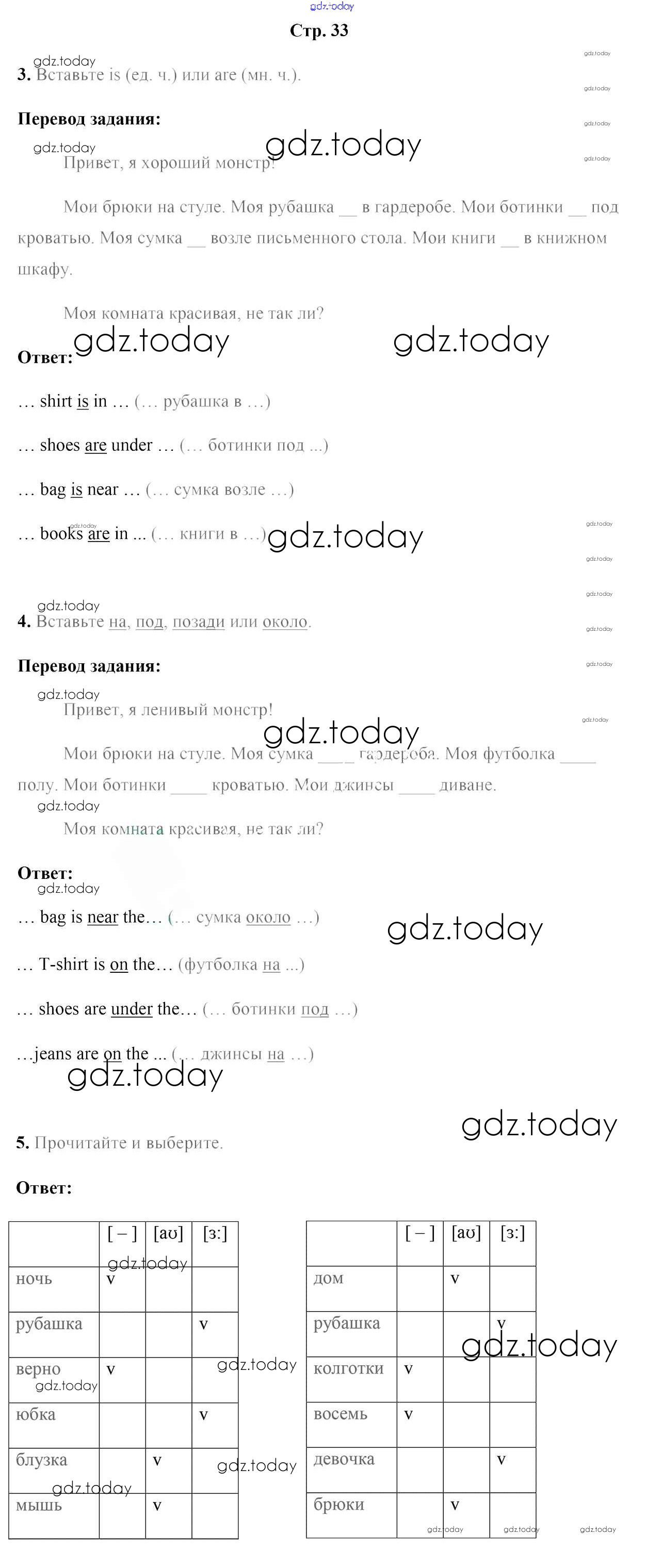 На страницах сайта gdz.today вы найдете учебный и вспомогательный материал, направленный на улучшения знаний школьной программы. ГДЗ - онлайн мир знаний Решение к части 2. Страницы 33 Рабочей тетради по Английскому языку для 4 класса Лапицкая, Калишевич Аверсэв 2019