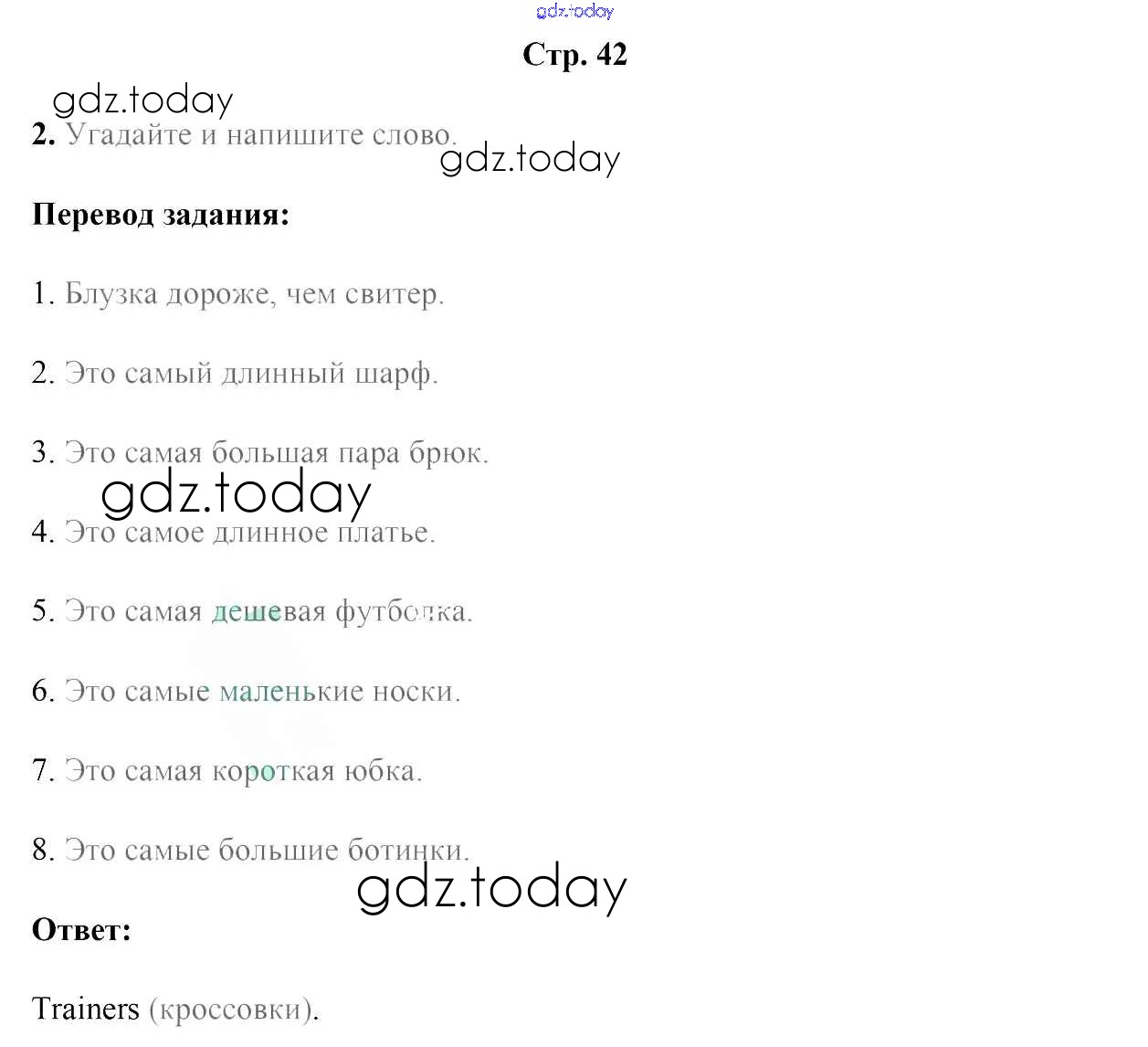 На страницах сайта gdz.today вы найдете учебный и вспомогательный материал, направленный на улучшения знаний школьной программы. ГДЗ - онлайн мир знаний Решение к части 2. Страницы 42 Рабочей тетради по Английскому языку для 4 класса Лапицкая, Калишевич Аверсэв 2019