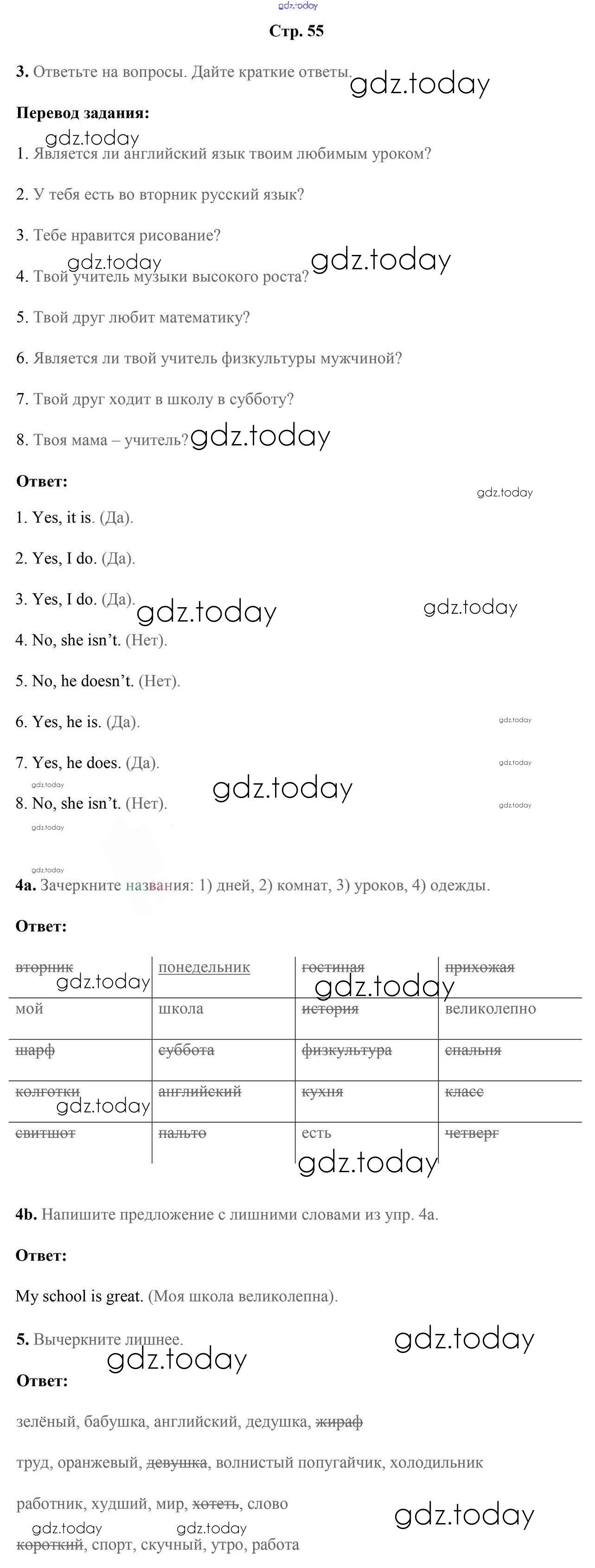 На страницах сайта gdz.today вы найдете учебный и вспомогательный материал, направленный на улучшения знаний школьной программы. ГДЗ - онлайн мир знаний Решение к части 2. Страницы 55 Рабочей тетради по Английскому языку для 4 класса Лапицкая, Калишевич Аверсэв 2019