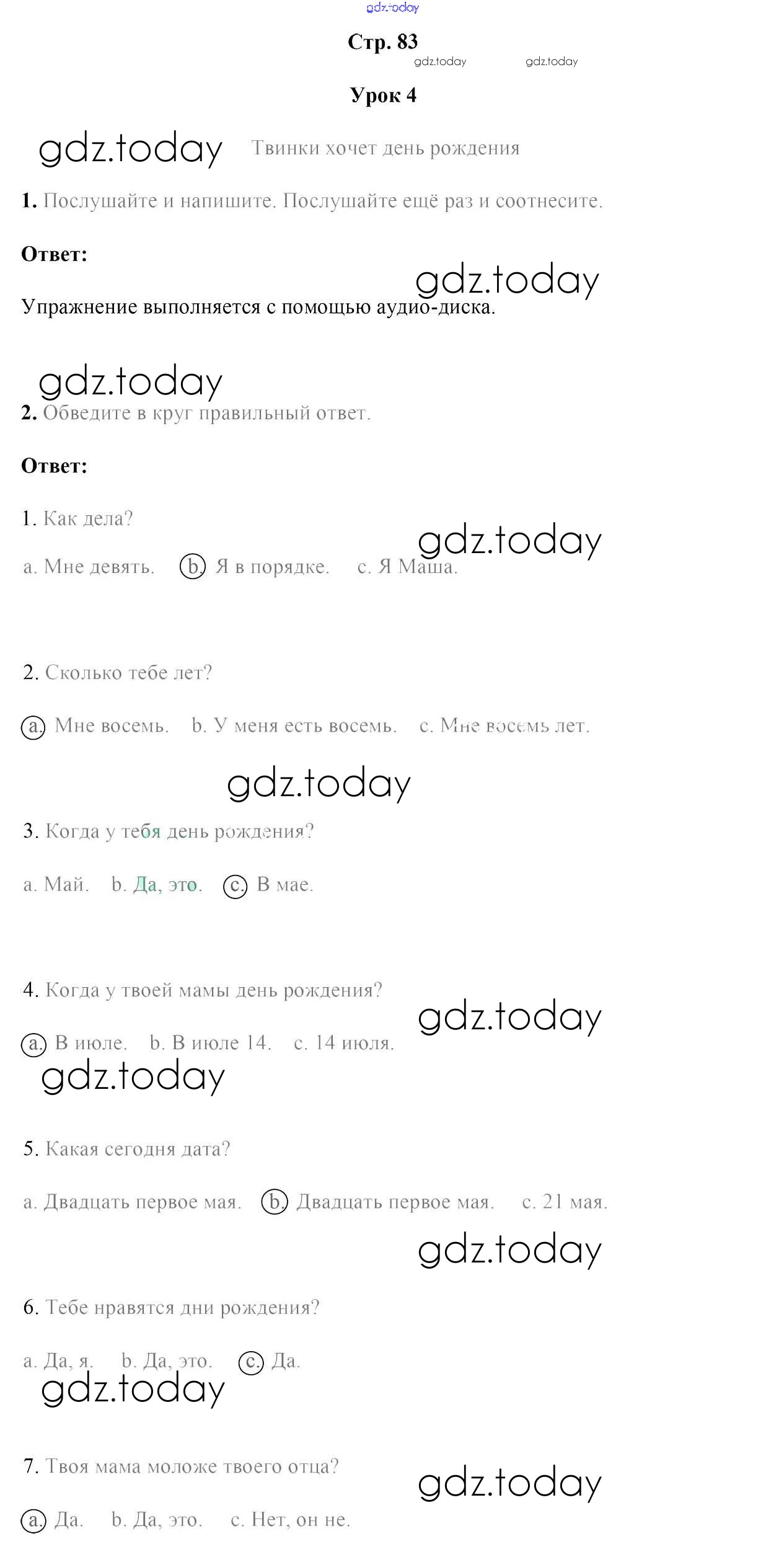 На страницах сайта gdz.today вы найдете учебный и вспомогательный материал, направленный на улучшения знаний школьной программы. ГДЗ - онлайн мир знаний Решение к части 2. Страницы 83 Рабочей тетради по Английскому языку для 4 класса Лапицкая, Калишевич Аверсэв 2019