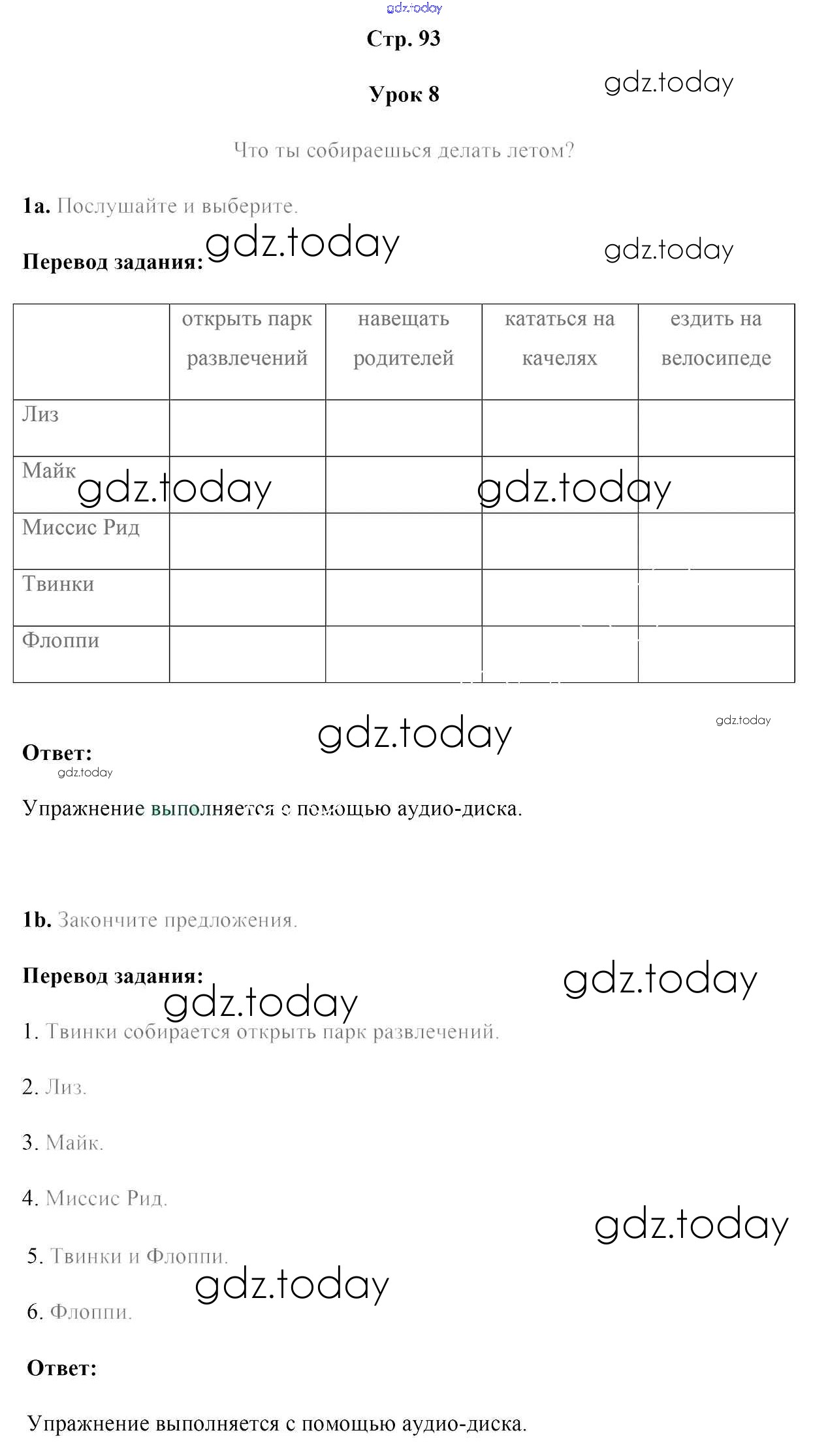На страницах сайта gdz.today вы найдете учебный и вспомогательный материал, направленный на улучшения знаний школьной программы. ГДЗ - онлайн мир знаний Решение к части 2. Страницы 93 Рабочей тетради по Английскому языку для 4 класса Лапицкая, Калишевич Аверсэв 2019