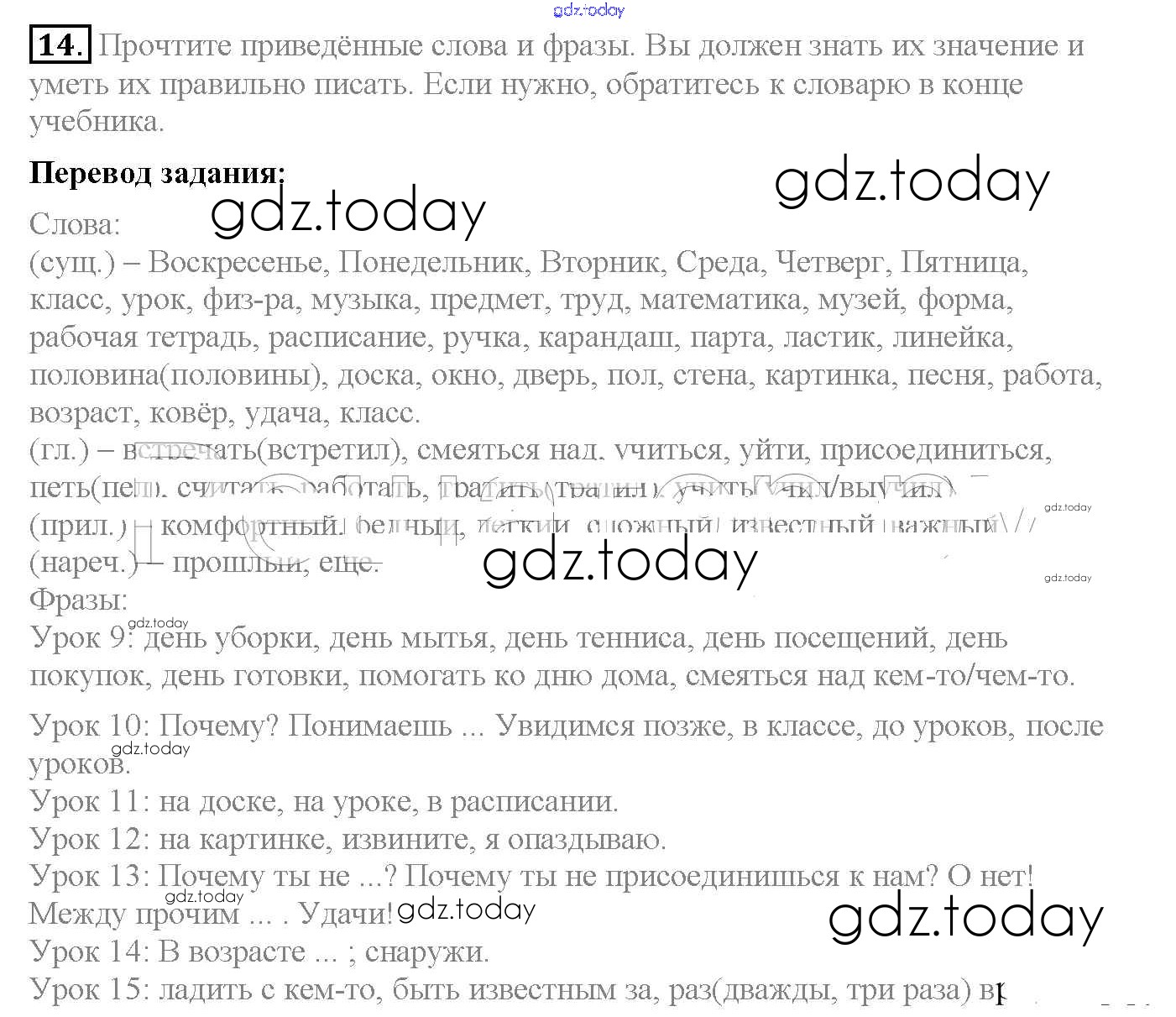 На страницах сайта gdz.today вы найдете учебный и вспомогательный материал, направленный на улучшения знаний школьной программы. ГДЗ - онлайн мир знаний Решение к Lesson 9-16 (Упражнения) 14 Рабочей тетради по Английскому языку для 4 класса Верещагина, Афанасьева Углубленный уровень Просвещение 2016