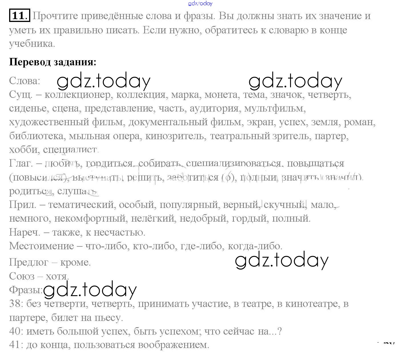 На страницах сайта gdz.today вы найдете учебный и вспомогательный материал, направленный на улучшения знаний школьной программы. ГДЗ - онлайн мир знаний Решение к Lesson 37-42 (Упражнения) 11 Рабочей тетради по Английскому языку для 4 класса Верещагина, Афанасьева Углубленный уровень Просвещение 2016