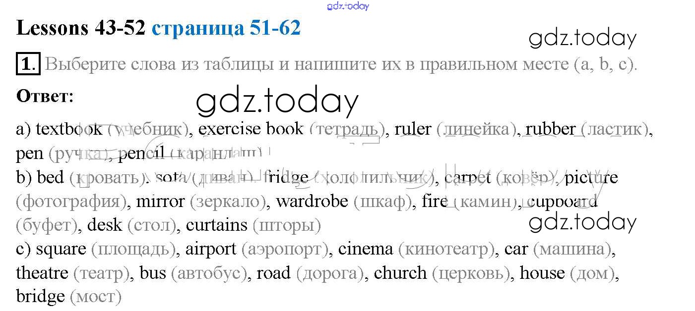 Ответы к Решение к Lesson 43-52 (Упражнения) 1 Рабочей тетради по Английскому языку для 4 класса Верещагина, Афанасьева Углубленный уровень Просвещение 2016