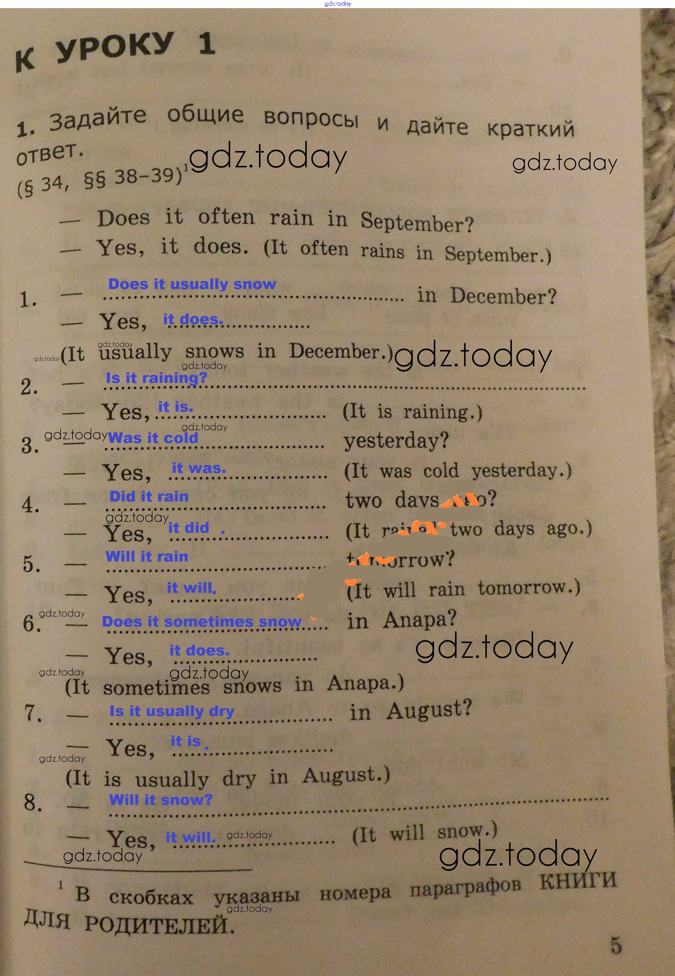 Ответы к Урок 1 Решение к части 1 стр.5 Сборнику упражнений по Английскому языку для 4 класса Барашкова Экзамен УМК 2018