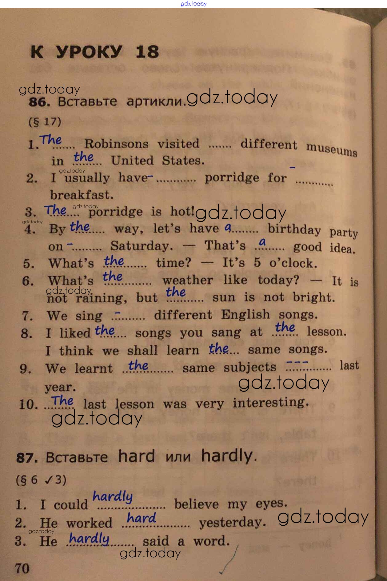 На страницах сайта gdz.today вы найдете учебный и вспомогательный материал, направленный на улучшения знаний школьной программы. ГДЗ - онлайн мир знаний Урок 18 Решение к части 1 стр.70 Сборнику упражнений по Английскому языку для 4 класса Барашкова Экзамен УМК 2018