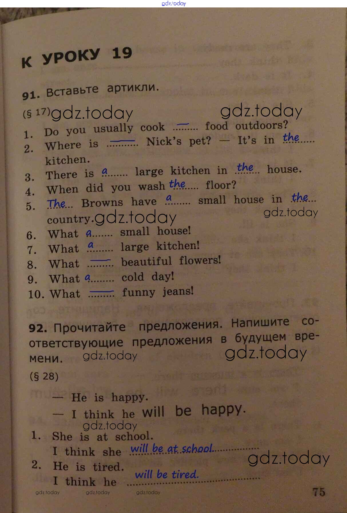 На страницах сайта gdz.today вы найдете учебный и вспомогательный материал, направленный на улучшения знаний школьной программы. ГДЗ - онлайн мир знаний Урок 19 Решение к части 1 стр.75 Сборнику упражнений по Английскому языку для 4 класса Барашкова Экзамен УМК 2018