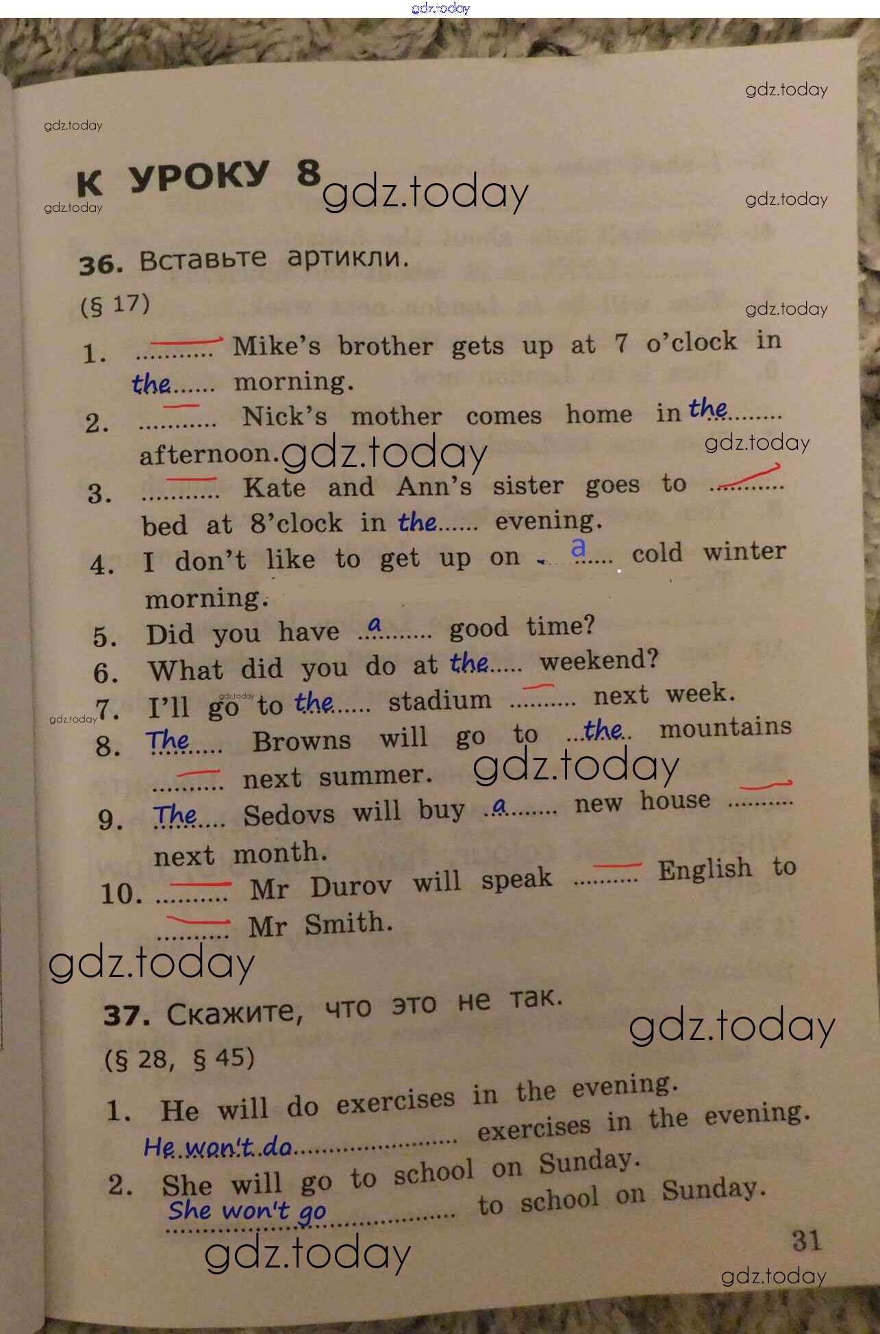 На страницах сайта gdz.today вы найдете учебный и вспомогательный материал, направленный на улучшения знаний школьной программы. ГДЗ - онлайн мир знаний Урок 8 Решение к части 1 стр.31 Сборнику упражнений по Английскому языку для 4 класса Барашкова Экзамен УМК 2018