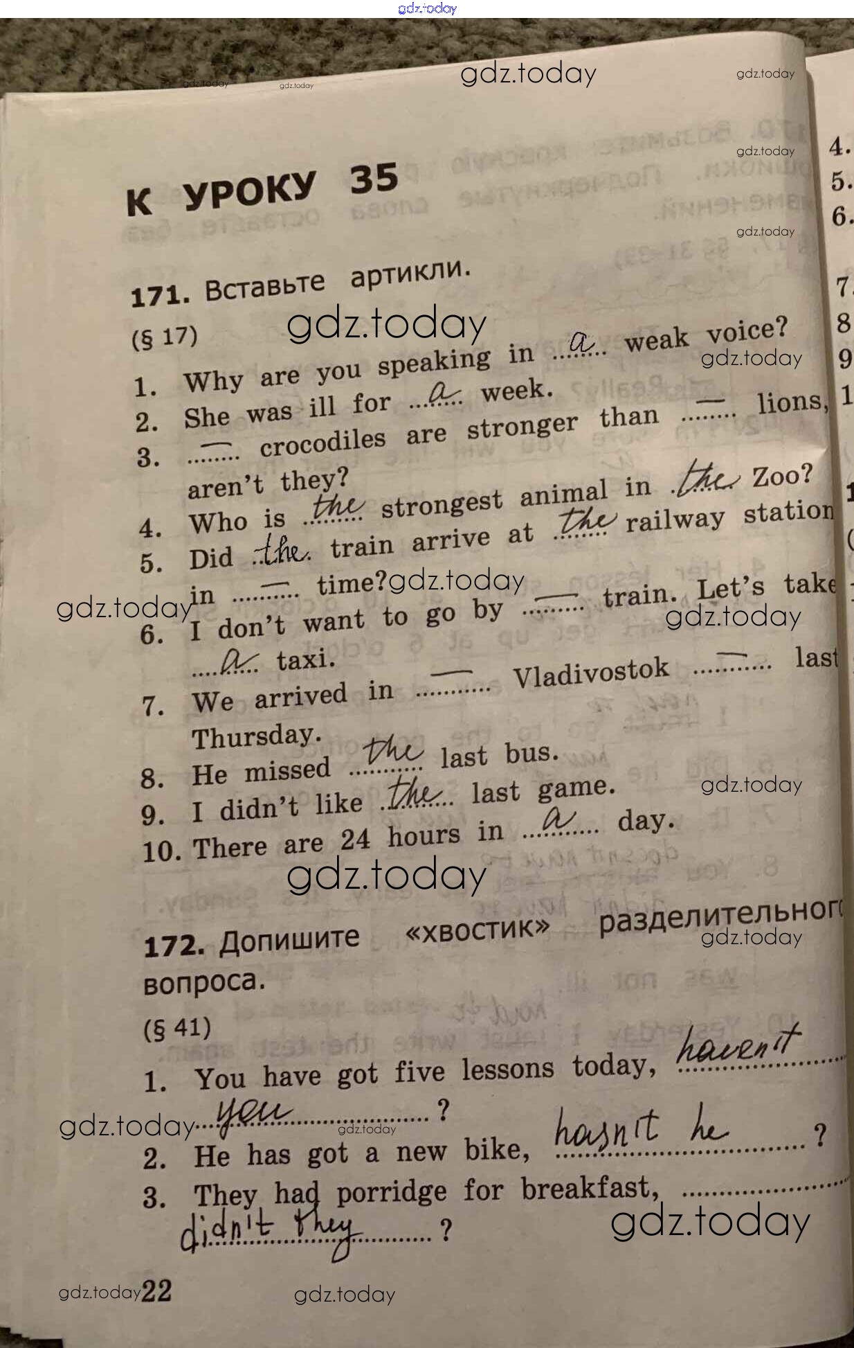 На страницах сайта gdz.today вы найдете учебный и вспомогательный материал, направленный на улучшения знаний школьной программы. ГДЗ - онлайн мир знаний Урок 35 Решение к части 2 стр.22 Сборнику упражнений по Английскому языку для 4 класса Барашкова Экзамен УМК 2018