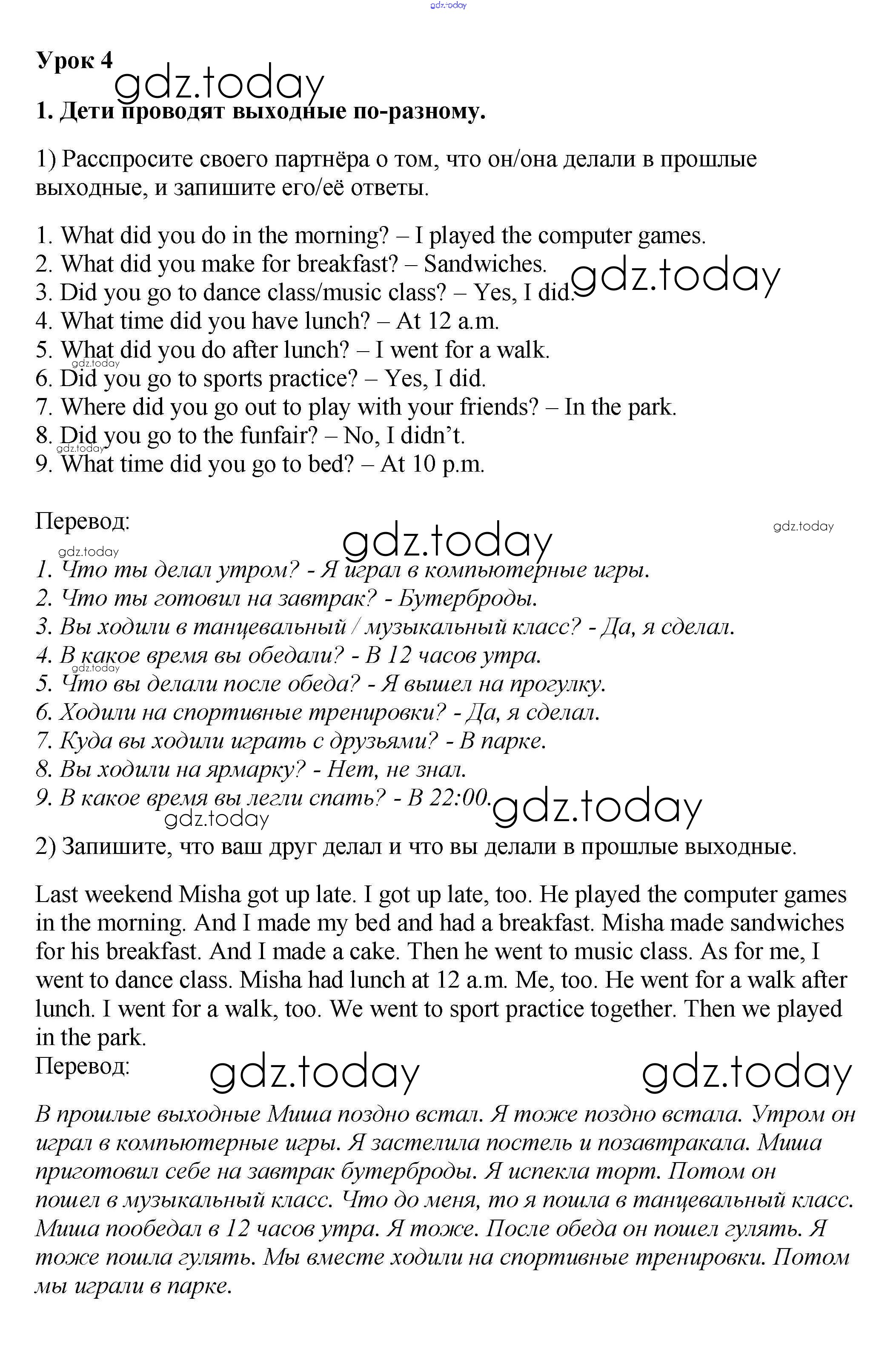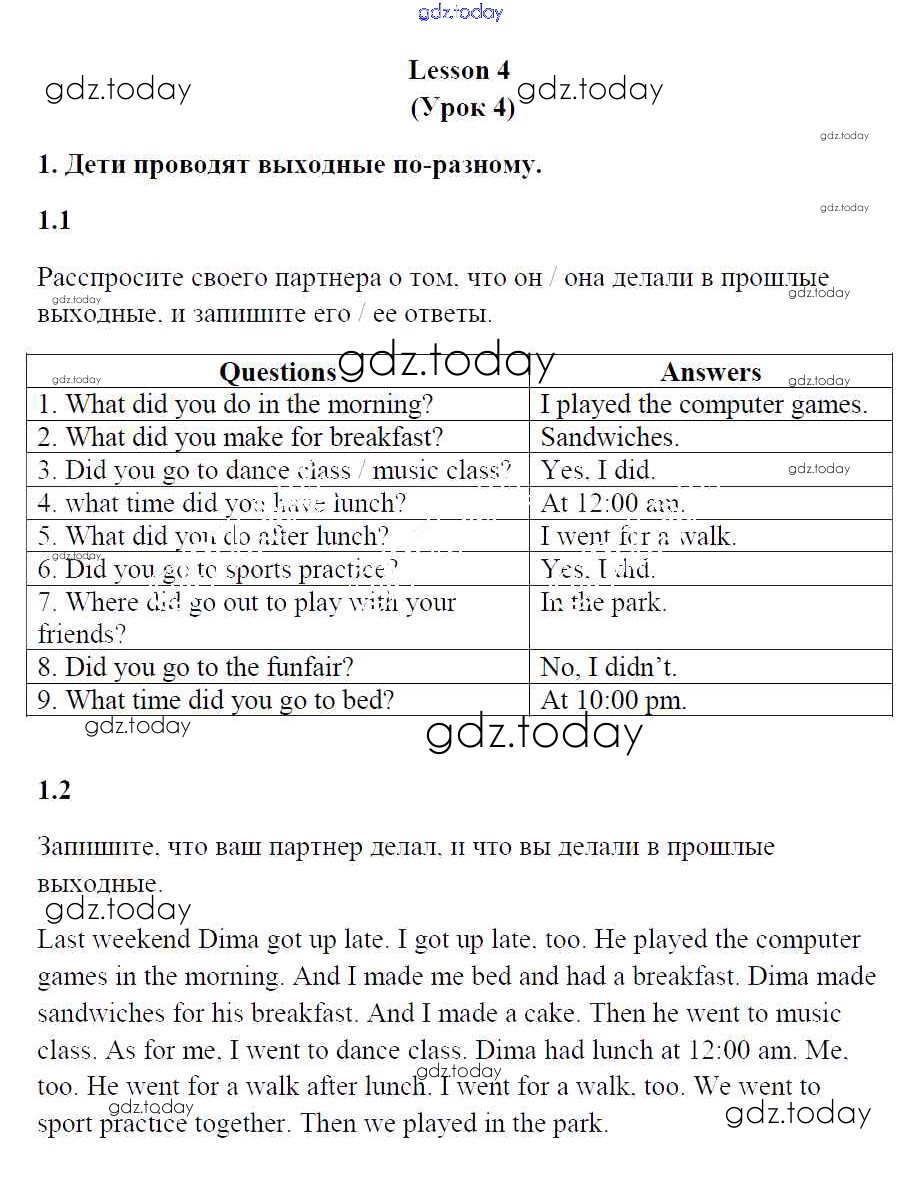 На страницах сайта gdz.today вы найдете учебный и вспомогательный материал, направленный на улучшения знаний школьной программы. ГДЗ - онлайн мир знаний Lesson 4 Решение к Unit 3 1 Рабочей тетради по Английскому языку для 4 класса Кузовлев, Перегудова Просвещение 2013