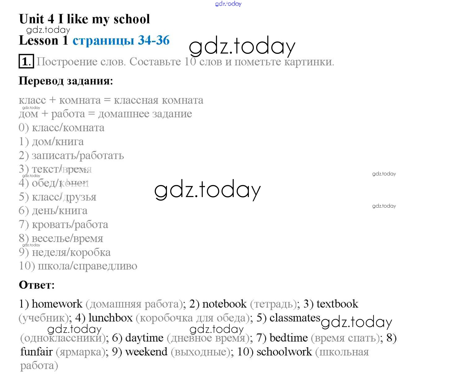 На страницах сайта gdz.today вы найдете учебный и вспомогательный материал, направленный на улучшения знаний школьной программы. ГДЗ - онлайн мир знаний Lesson 1 Решение к Unit 4 1 Рабочей тетради по Английскому языку для 4 класса Кузовлев, Перегудова Просвещение 2013
