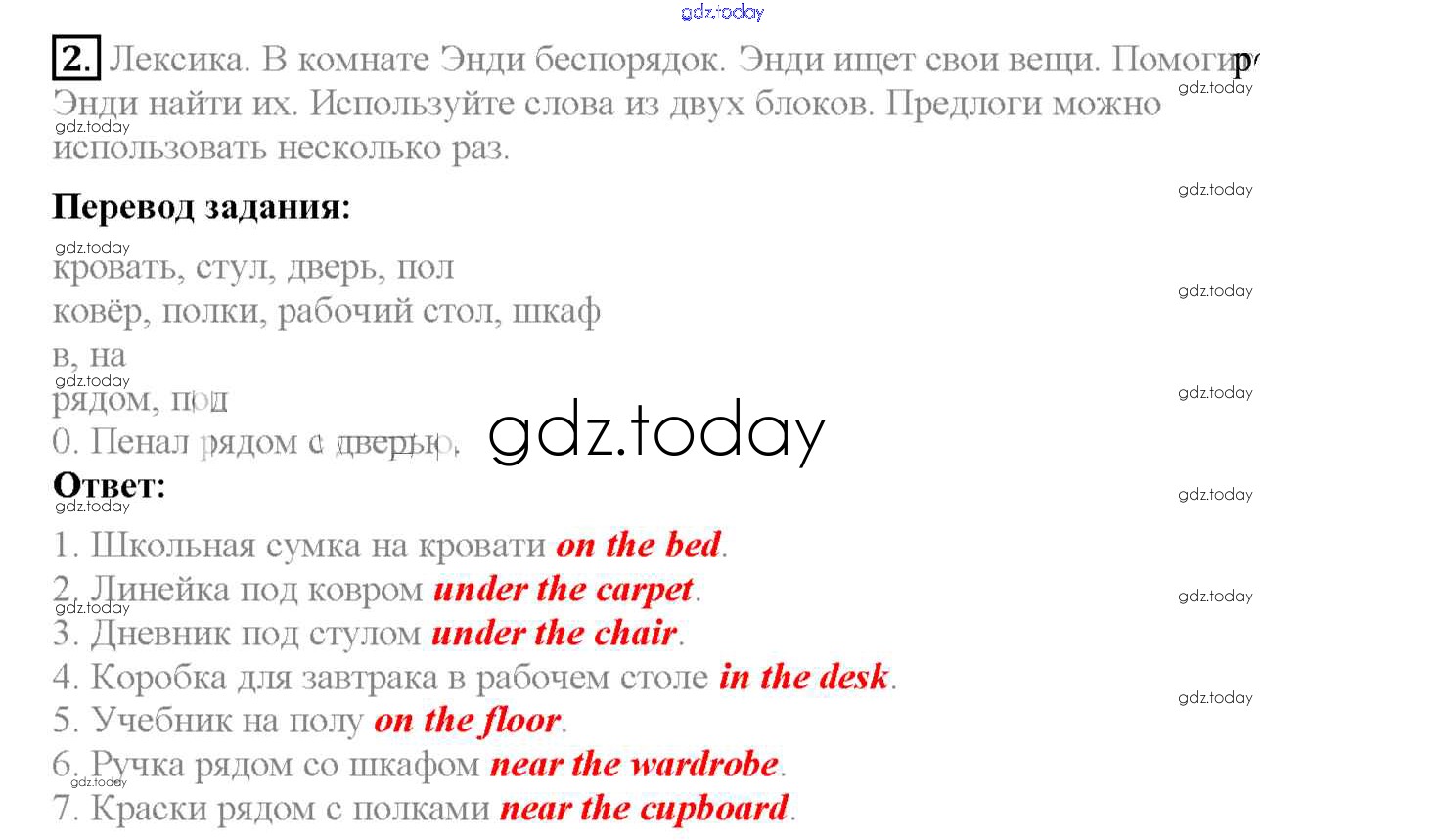 На страницах сайта gdz.today вы найдете учебный и вспомогательный материал, направленный на улучшения знаний школьной программы. ГДЗ - онлайн мир знаний Lesson 1 Решение к Unit 5 2 Рабочей тетради по Английскому языку для 4 класса Кузовлев, Перегудова Просвещение 2013