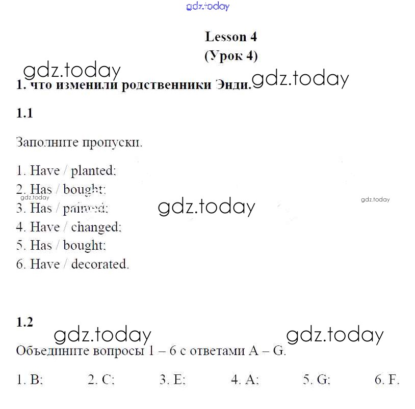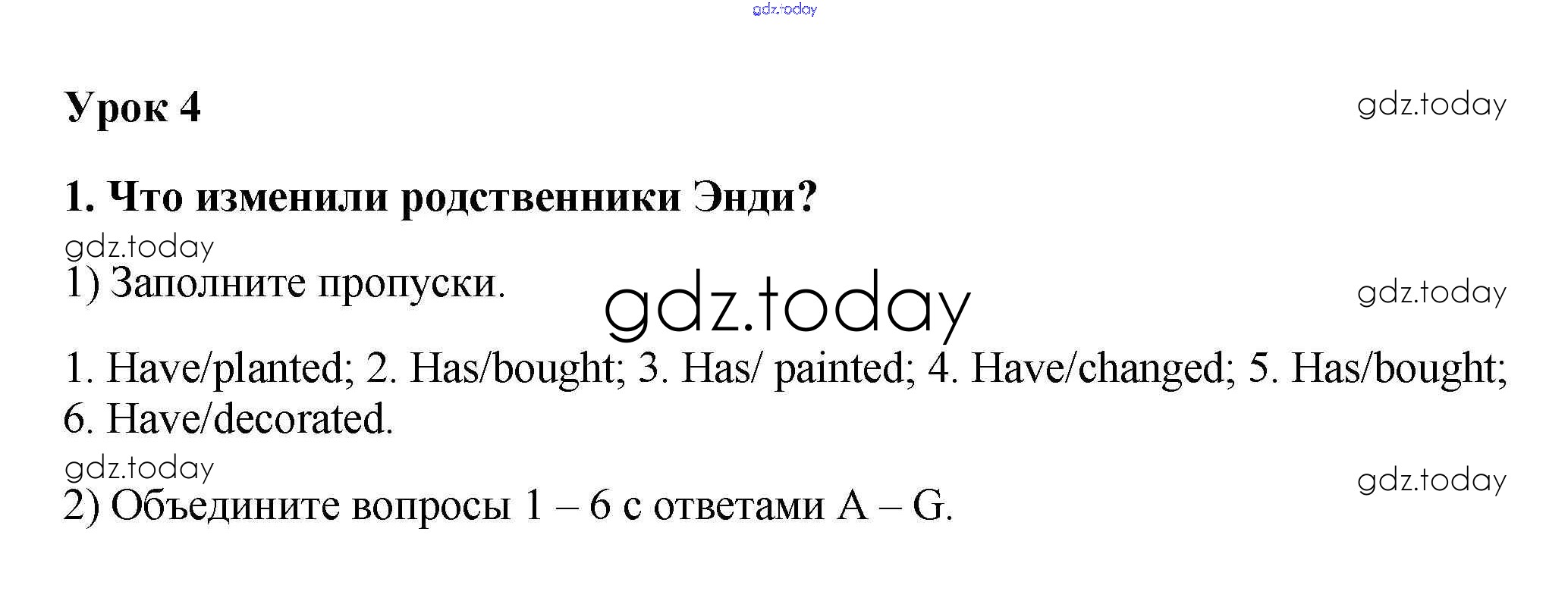 На страницах сайта gdz.today вы найдете учебный и вспомогательный материал, направленный на улучшения знаний школьной программы. ГДЗ - онлайн мир знаний Lesson 4 Решение к Unit 5 1 Рабочей тетради по Английскому языку для 4 класса Кузовлев, Перегудова Просвещение 2013