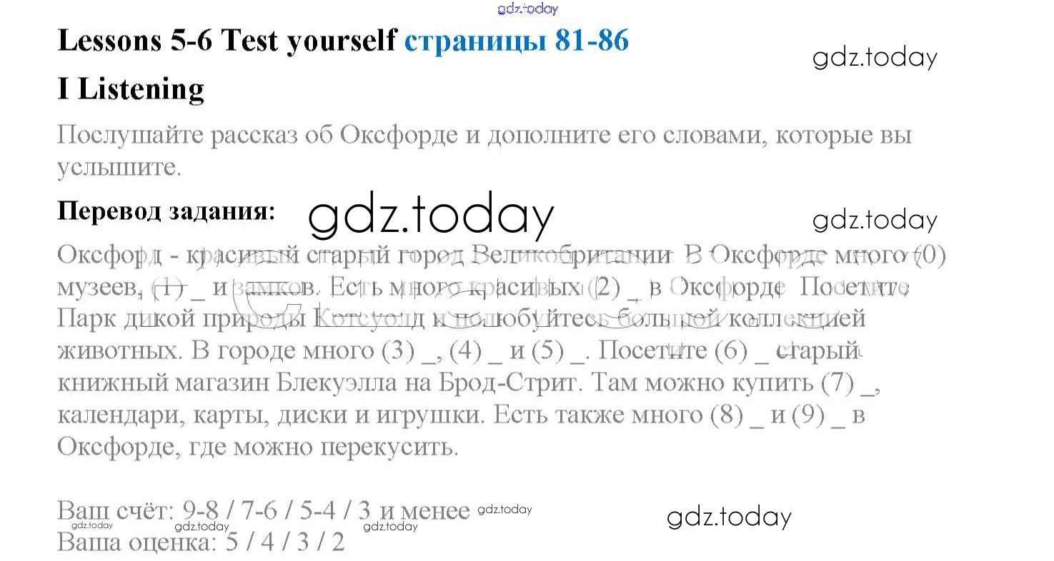 Ответы к Lesson 5-6. Test yourself Решение к Unit 7 Listening Рабочей тетради по Английскому языку для 4 класса Кузовлев, Перегудова Просвещение 2013