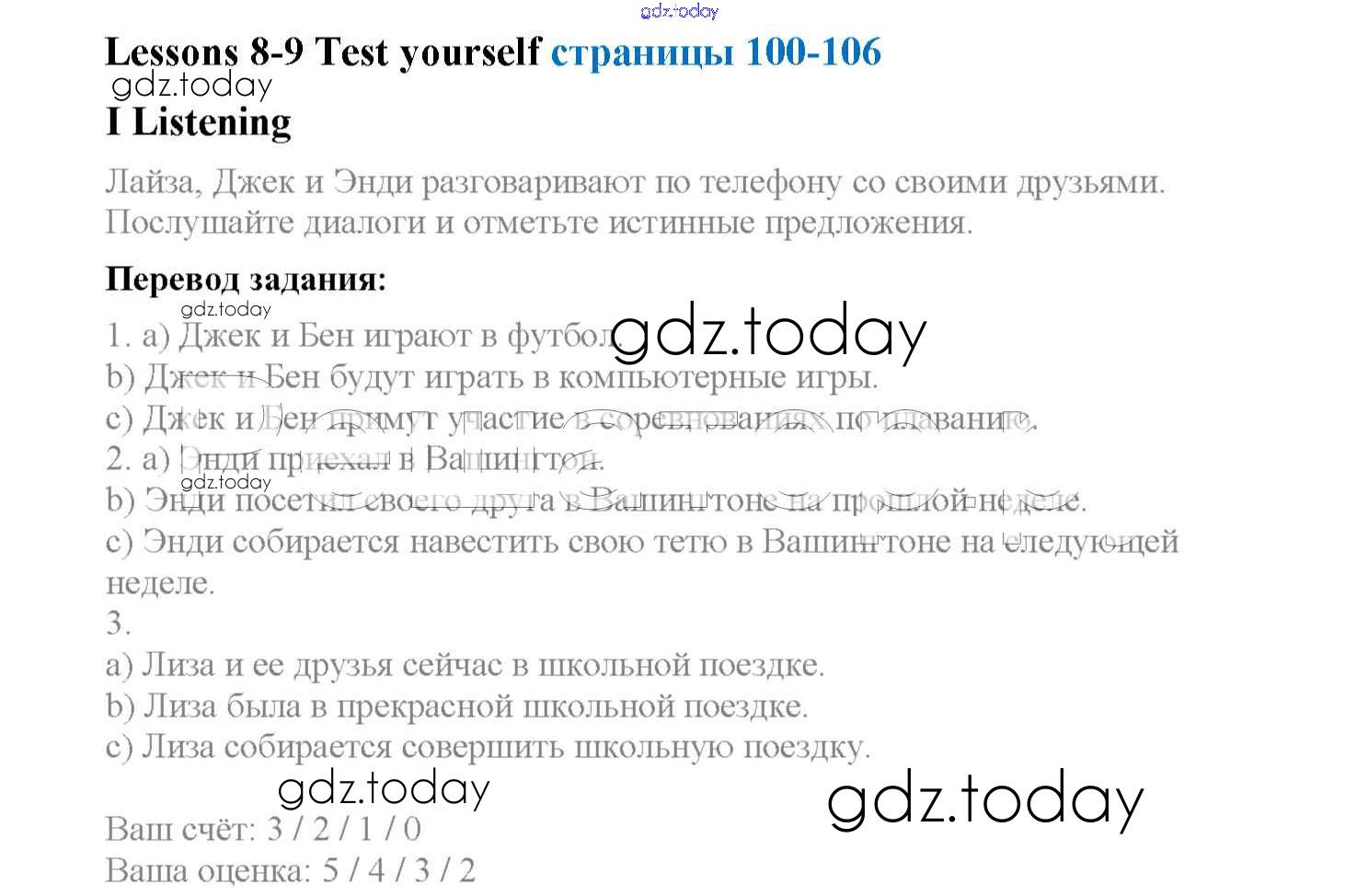 Ответы к Lesson 8-9. Test yourself Решение к Unit 8 Listening Рабочей тетради по Английскому языку для 4 класса Кузовлев, Перегудова Просвещение 2013