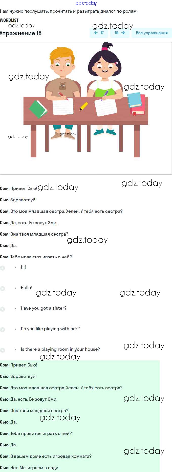 На страницах сайта gdz.today вы найдете учебный и вспомогательный материал, направленный на улучшения знаний школьной программы. ГДЗ - онлайн мир знаний Решение. Раздел 1. Фонетический курс 18 Учебнику по Английскому языку для 4 класса Комарова, Ларионова Русское слово Brilliant 2020