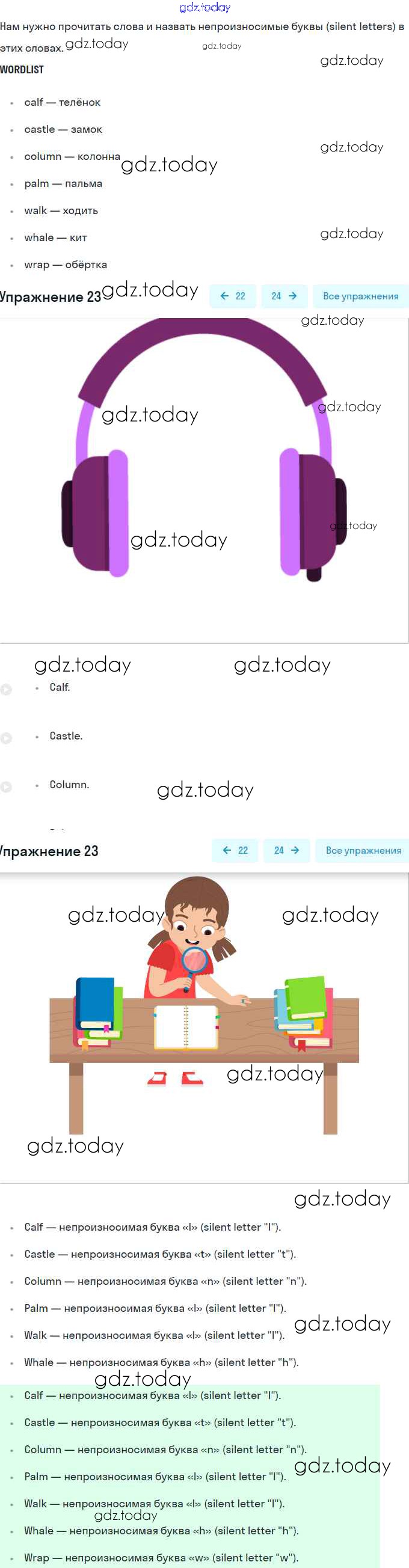 На страницах сайта gdz.today вы найдете учебный и вспомогательный материал, направленный на улучшения знаний школьной программы. ГДЗ - онлайн мир знаний Решение. Раздел 1. Фонетический курс 23 Учебнику по Английскому языку для 4 класса Комарова, Ларионова Русское слово Brilliant 2020