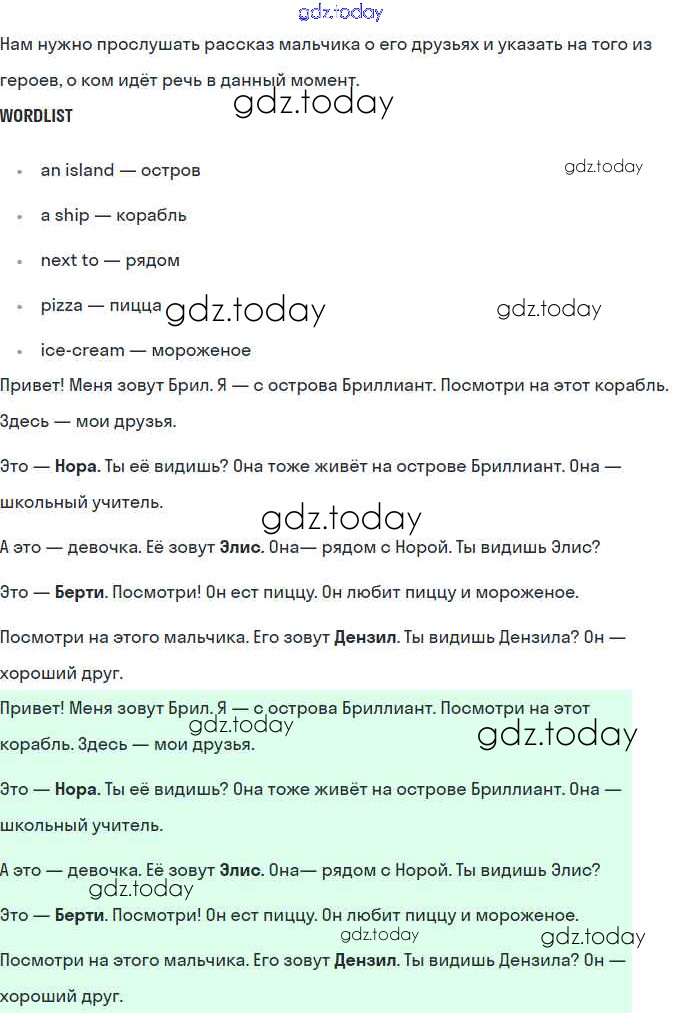 На страницах сайта gdz.today вы найдете учебный и вспомогательный материал, направленный на улучшения знаний школьной программы. ГДЗ - онлайн мир знаний Решение. Раздел 1. Знакомство с героями истории 1 Учебнику по Английскому языку для 4 класса Комарова, Ларионова Русское слово Brilliant 2020