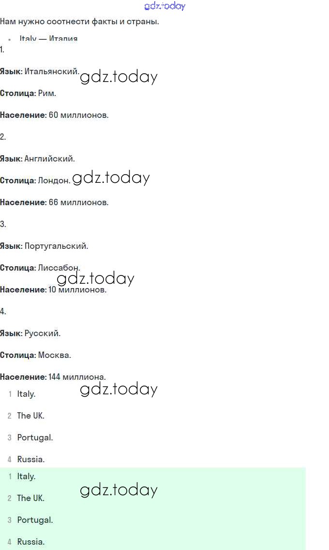 На страницах сайта gdz.today вы найдете учебный и вспомогательный материал, направленный на улучшения знаний школьной программы. ГДЗ - онлайн мир знаний Решение. Раздел 2. Межпредметные связи 1 Учебнику по Английскому языку для 4 класса Комарова, Ларионова Русское слово Brilliant 2020
