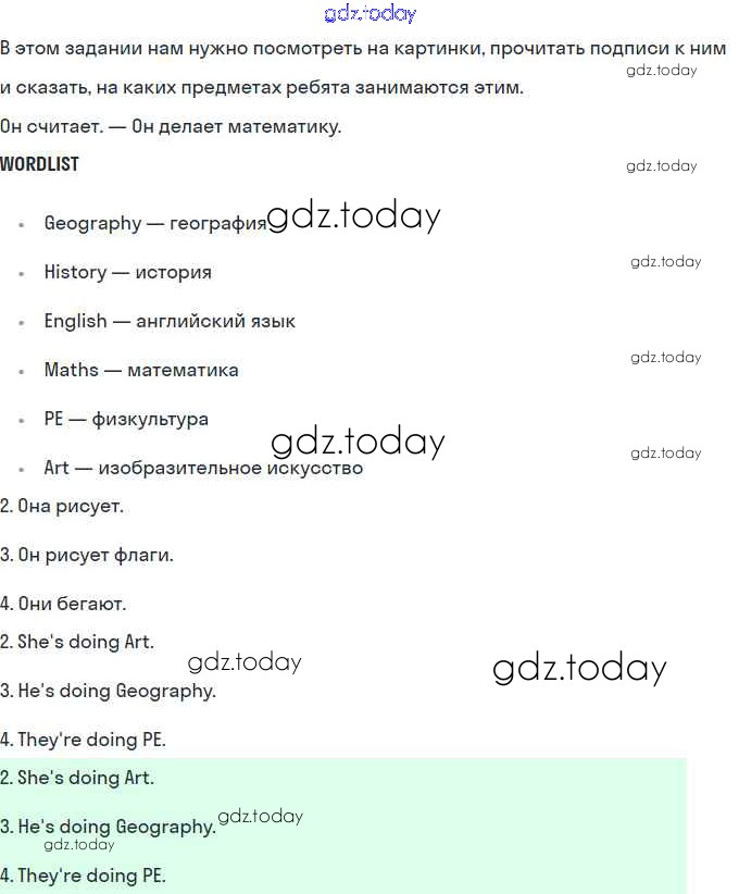 На страницах сайта gdz.today вы найдете учебный и вспомогательный материал, направленный на улучшения знаний школьной программы. ГДЗ - онлайн мир знаний Решение. Раздел 3. Мои школьные предметы 10 Учебнику по Английскому языку для 4 класса Комарова, Ларионова Русское слово Brilliant 2020