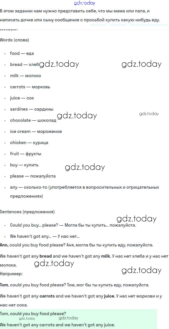 На страницах сайта gdz.today вы найдете учебный и вспомогательный материал, направленный на улучшения знаний школьной программы. ГДЗ - онлайн мир знаний Решение. Раздел 5. Еда 10 Учебнику по Английскому языку для 4 класса Комарова, Ларионова Русское слово Brilliant 2020