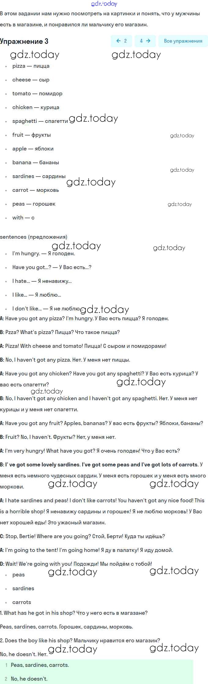 На страницах сайта gdz.today вы найдете учебный и вспомогательный материал, направленный на улучшения знаний школьной программы. ГДЗ - онлайн мир знаний Решение. Раздел 5. Еда 3 Учебнику по Английскому языку для 4 класса Комарова, Ларионова Русское слово Brilliant 2020