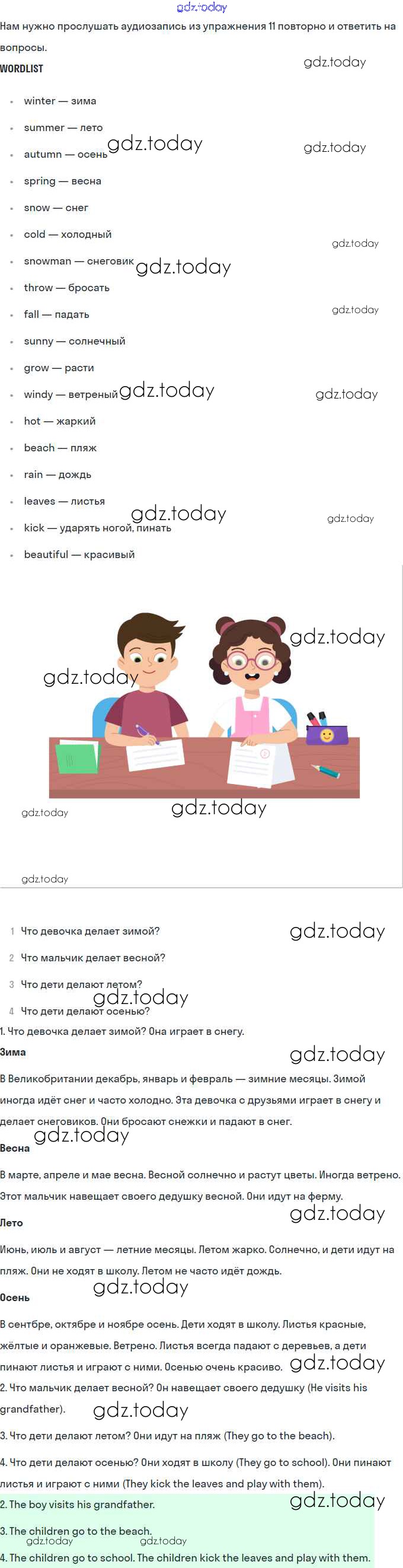 На страницах сайта gdz.today вы найдете учебный и вспомогательный материал, направленный на улучшения знаний школьной программы. ГДЗ - онлайн мир знаний Решение. Раздел 7. Погода 12 Учебнику по Английскому языку для 4 класса Комарова, Ларионова Русское слово Brilliant 2020