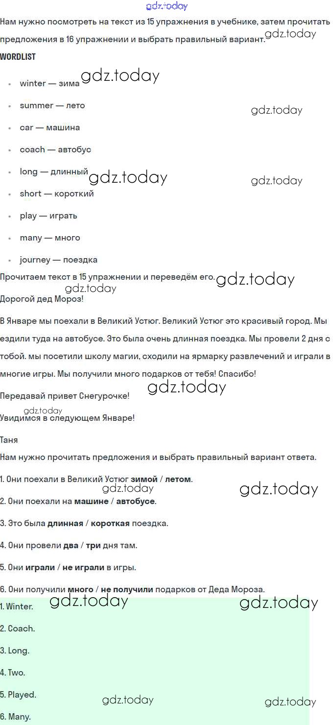 На страницах сайта gdz.today вы найдете учебный и вспомогательный материал, направленный на улучшения знаний школьной программы. ГДЗ - онлайн мир знаний Решение. Раздел 11. Путешествия 16 Учебнику по Английскому языку для 4 класса Комарова, Ларионова Русское слово Brilliant 2020