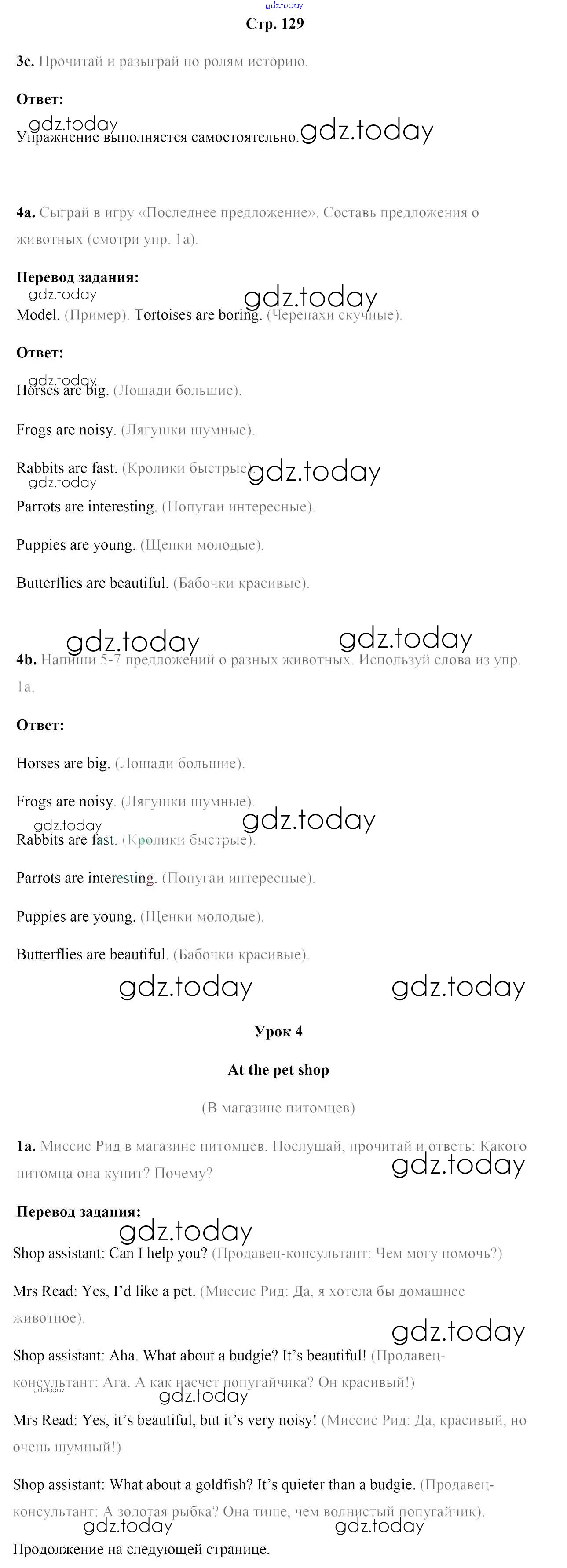 Ответы к Решение к части 1. Страницы 129 Учебнику по Английскому языку для 4 класса Лапицкая, Севрюкова Высшая школа 2019