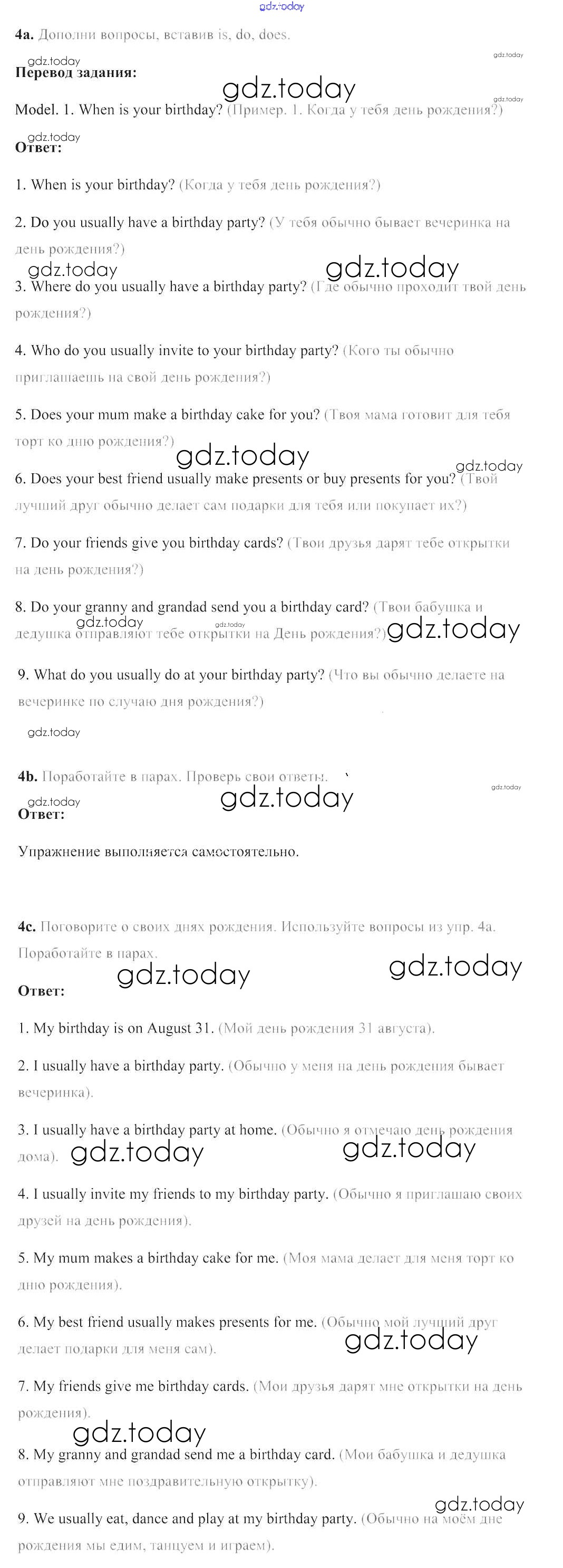 На страницах сайта gdz.today вы найдете учебный и вспомогательный материал, направленный на улучшения знаний школьной программы. ГДЗ - онлайн мир знаний Решение к части 2. Страницы 125 Учебнику по Английскому языку для 4 класса Лапицкая, Севрюкова Высшая школа 2019