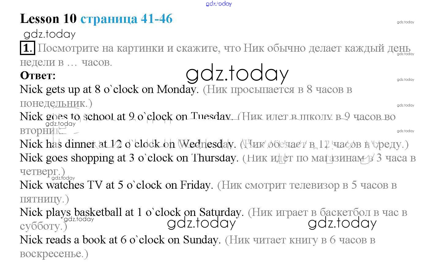На страницах сайта gdz.today вы найдете учебный и вспомогательный материал, направленный на улучшения знаний школьной программы. ГДЗ - онлайн мир знаний Решение к Lesson 10 1 Учебнику по Английскому языку для 4 класса Верещагина, Афанасьева Углубленный уровень Просвещение 2015