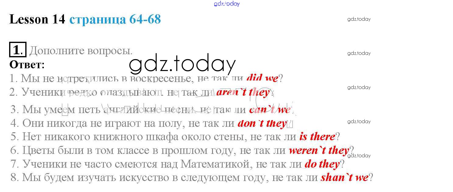 На страницах сайта gdz.today вы найдете учебный и вспомогательный материал, направленный на улучшения знаний школьной программы. ГДЗ - онлайн мир знаний Решение к Lesson 14 1 Учебнику по Английскому языку для 4 класса Верещагина, Афанасьева Углубленный уровень Просвещение 2015